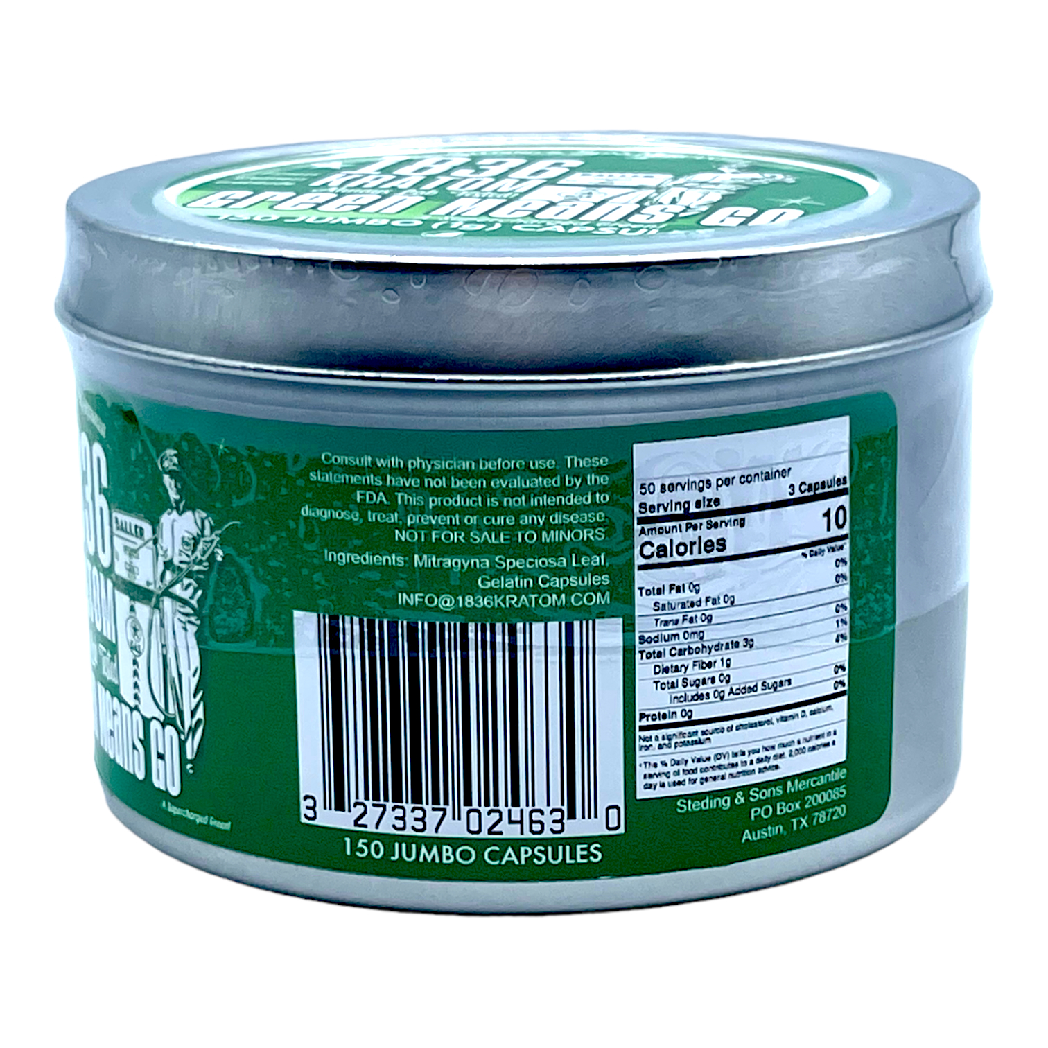 1836 Kratom – Green Means Go Jumbo Capsules