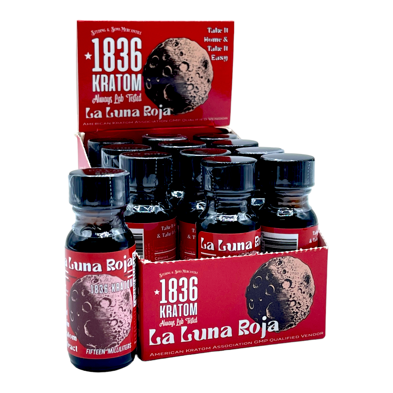 1836 Kratom is a respected name in the kratom community, offering a variety of extracts, powders, and capsules known for their consistent quality. The La Luna Roja Extract Shot delivers a carefully crafted liquid botanical blend in a convenient 15mL bottle.