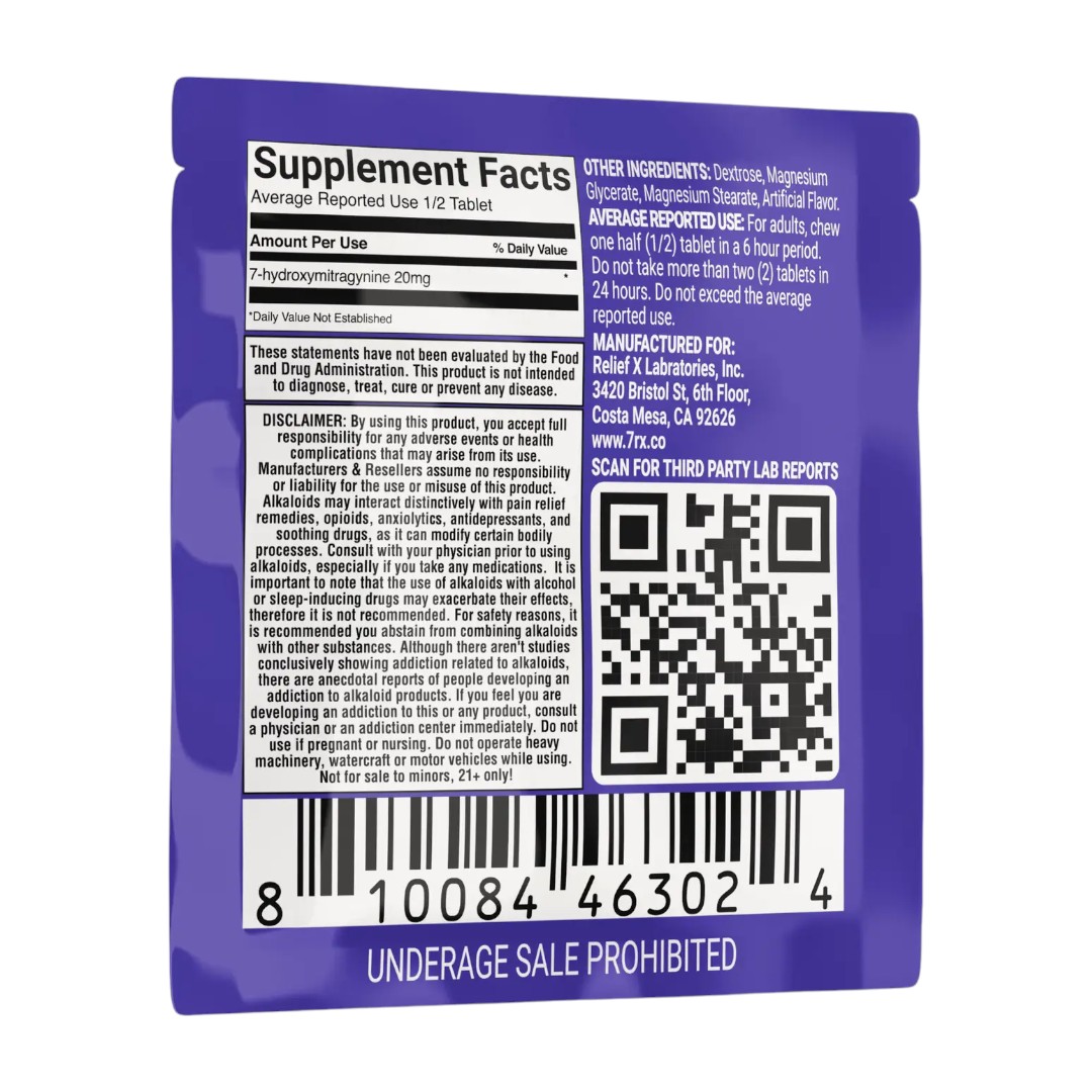 The 7RX Flavored Tablets 40mg are designed for kratom users who want serious strength with no hassle. Each chewable tablet contains 40mg of 7-hydroxymitragynine, split into two 20mg servings—giving you flexibility whether you’re going light or going all in.