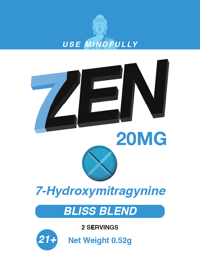 The 7Zen 7-OH Tablets Bliss Blend provide a carefully balanced kratom experience in a convenient tablet format. Each tablet contains 20mg of 7-hydroxymitragynine, delivering precision, consistency, and a smooth finish with added flavor enhancements.