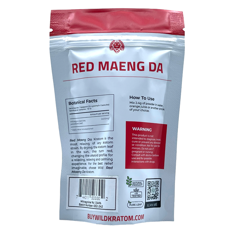 The Wild Kratom Red Maeng Da Capsules are crafted from pure Mitragyna speciosa leaf powder, offering one of the most well-known and calming kratom varieties. Red Maeng Da is popular among enthusiasts for its smooth, relaxing qualities, created through a special drying process that naturally alters the leaf’s alkaloid profile.