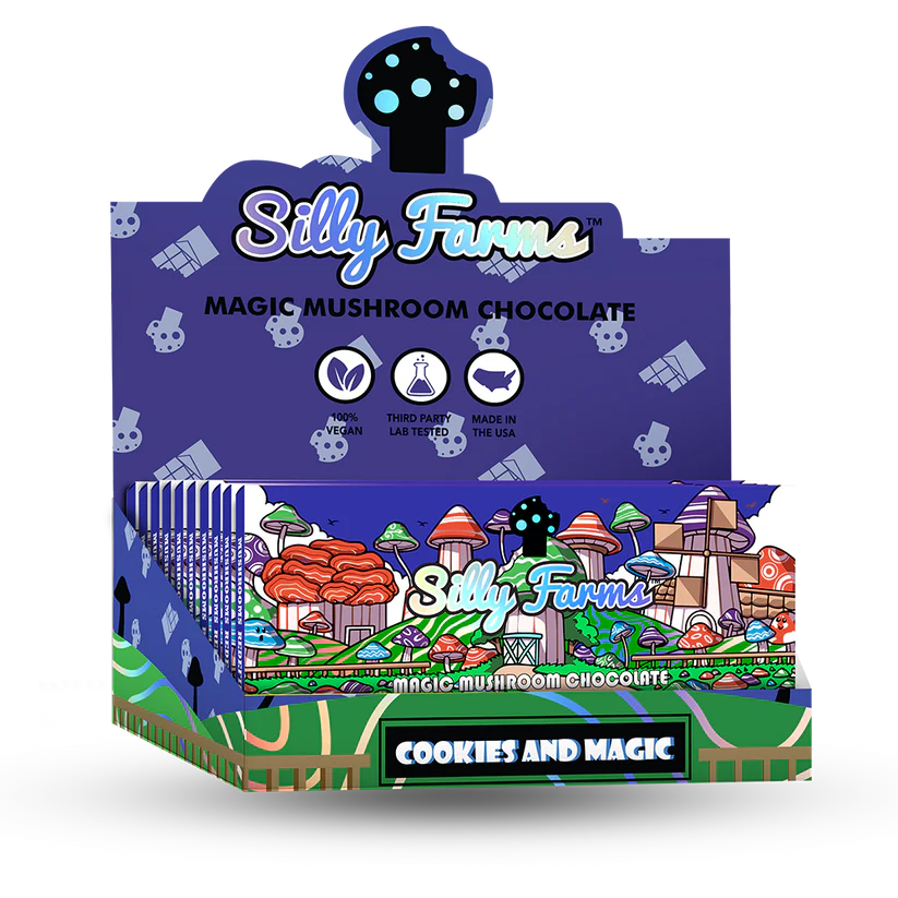 Welcome to Silly Farms: Cookies and Magic Magic Mushroom Chocolate Bar