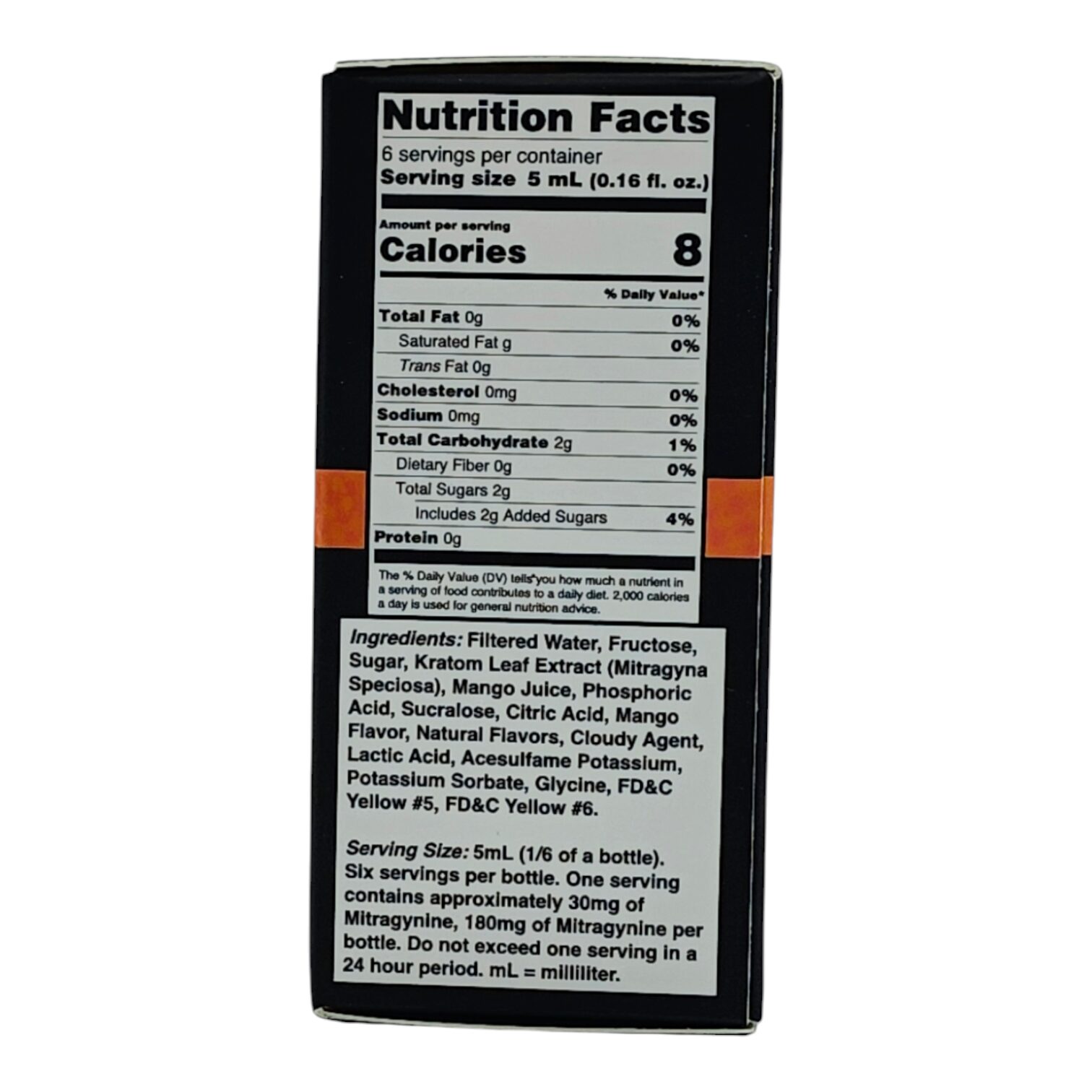 Serving Size – 5mL (1/6 of a bottle) ≈ 30mg Mitragynine