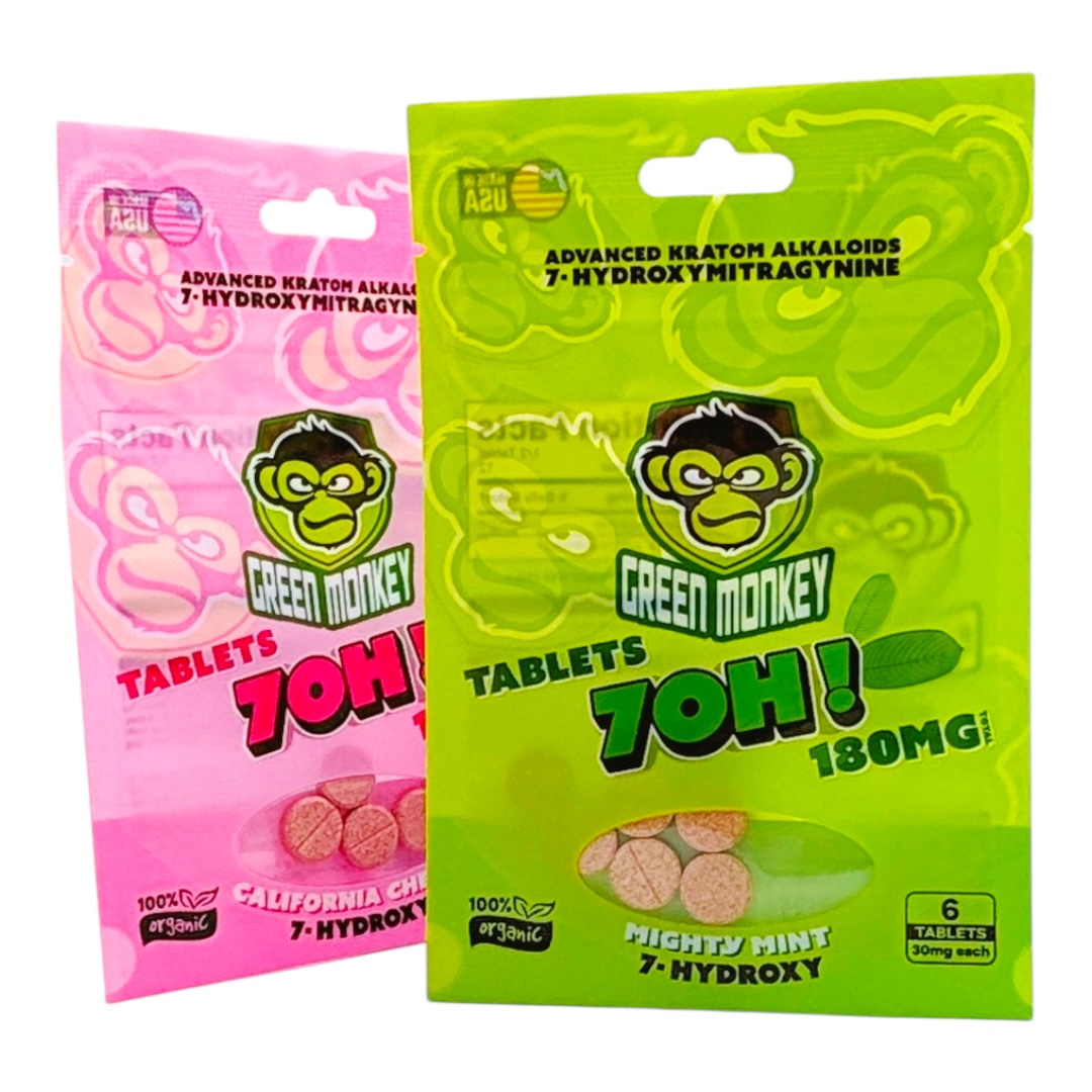 Discover bold flavors and precision strength with Green Monkey 7-OH Flavored Tablets 30mg. Available in three distinct flavor options, these tablets are crafted for consistency and packaged for convenience—an ideal choice for collectors seeking premium 7-OH formulations.