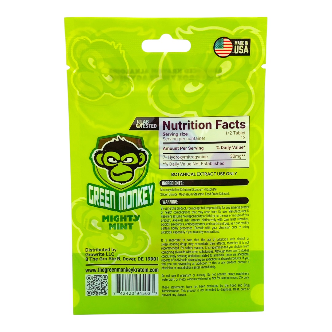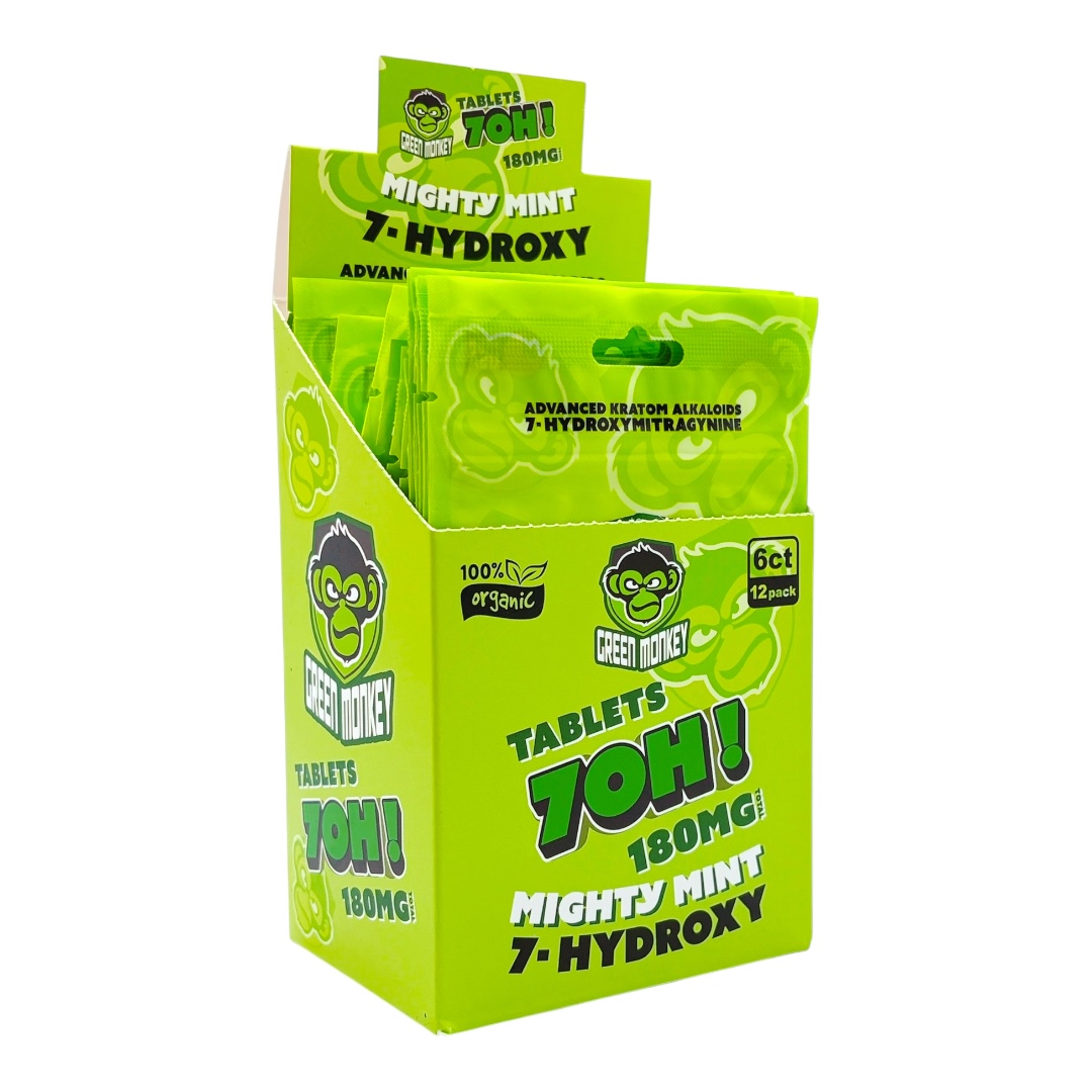Green Monkey 7-OH Flavored Tablets bring together strength and taste in a compact tablet format. Each tablet is formulated with 30mg of 7-hydroxymitragynine, giving collectors a potent and well-presented option that stands out in both flavor and consistency. Packaged in a convenient 6-count blister, these tablets are easy to store, transport, and showcase.