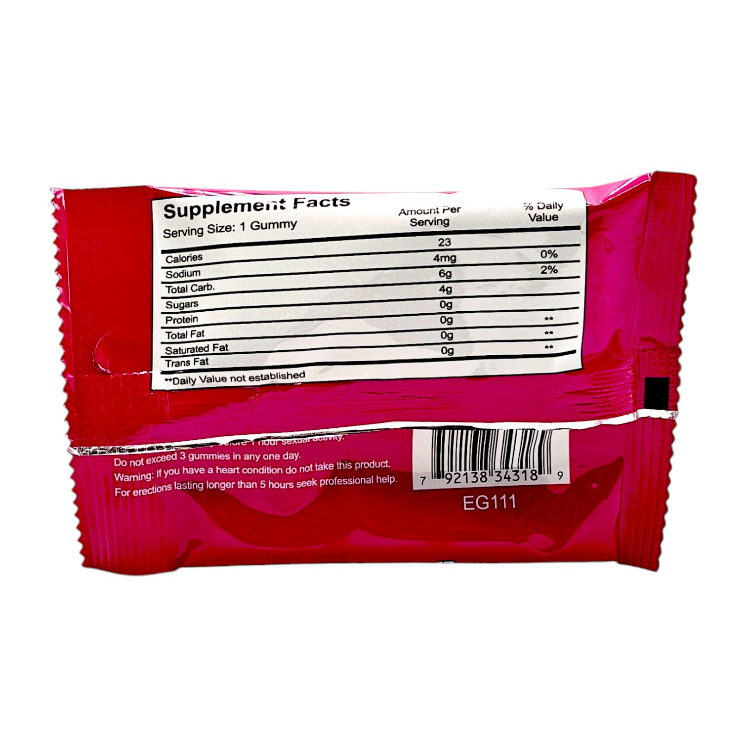 1 gummy per pack, with 5g per serving.