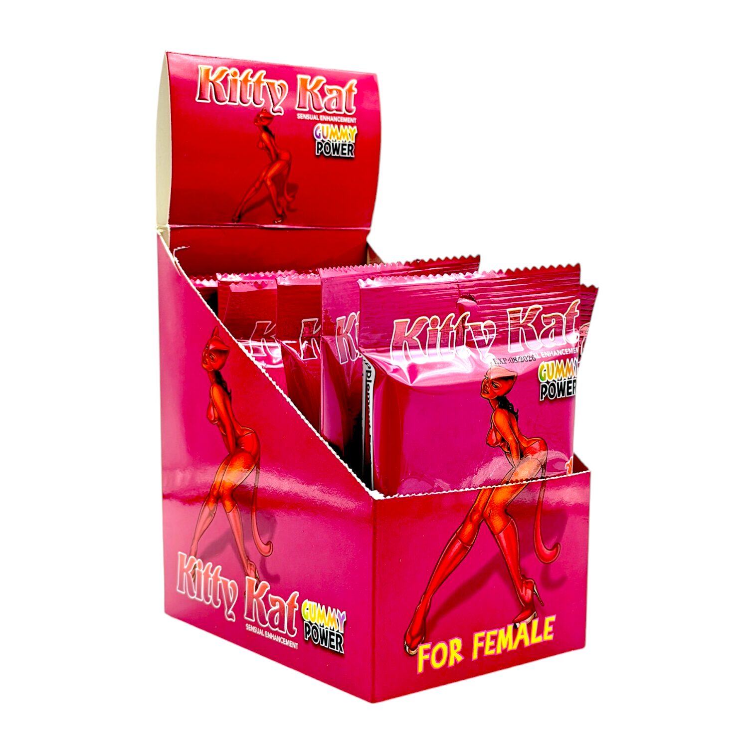 Experience the ultimate in female sensual enhancement with Kitty Kat Gummy, specially formulated to heighten pleasure and satisfaction. Each gummy is designed to be taken 1 hour before sexual activity, providing an exciting and effective boost when you need it most.