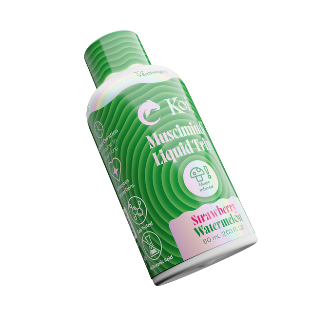 The Koi Muscimind Liquid Trip in Strawberry Watermelon flavor is presented in a 60mL bottle format. Each bottle contains a proprietary nootropic blend with functional botanicals and vitamins. This product is packaged for collectors and researchers interested in botanical references.
