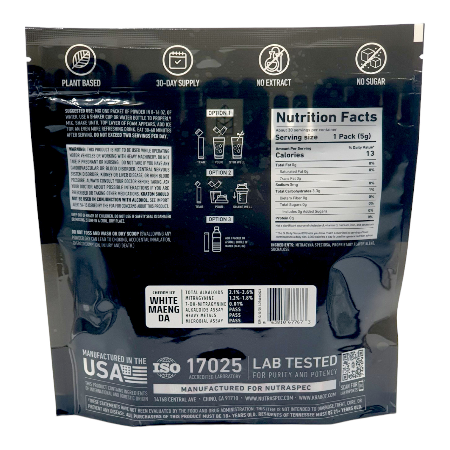 Ingredients: Mitragyna Speciosa, Proprietary Flavor Blend, Sucralose