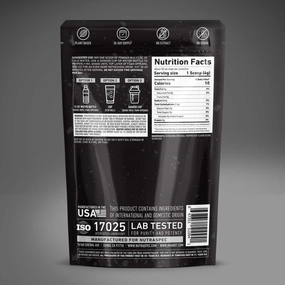Ingredients: Mitragyna Speciosa, Proprietary Flavor Blend, Sucralose