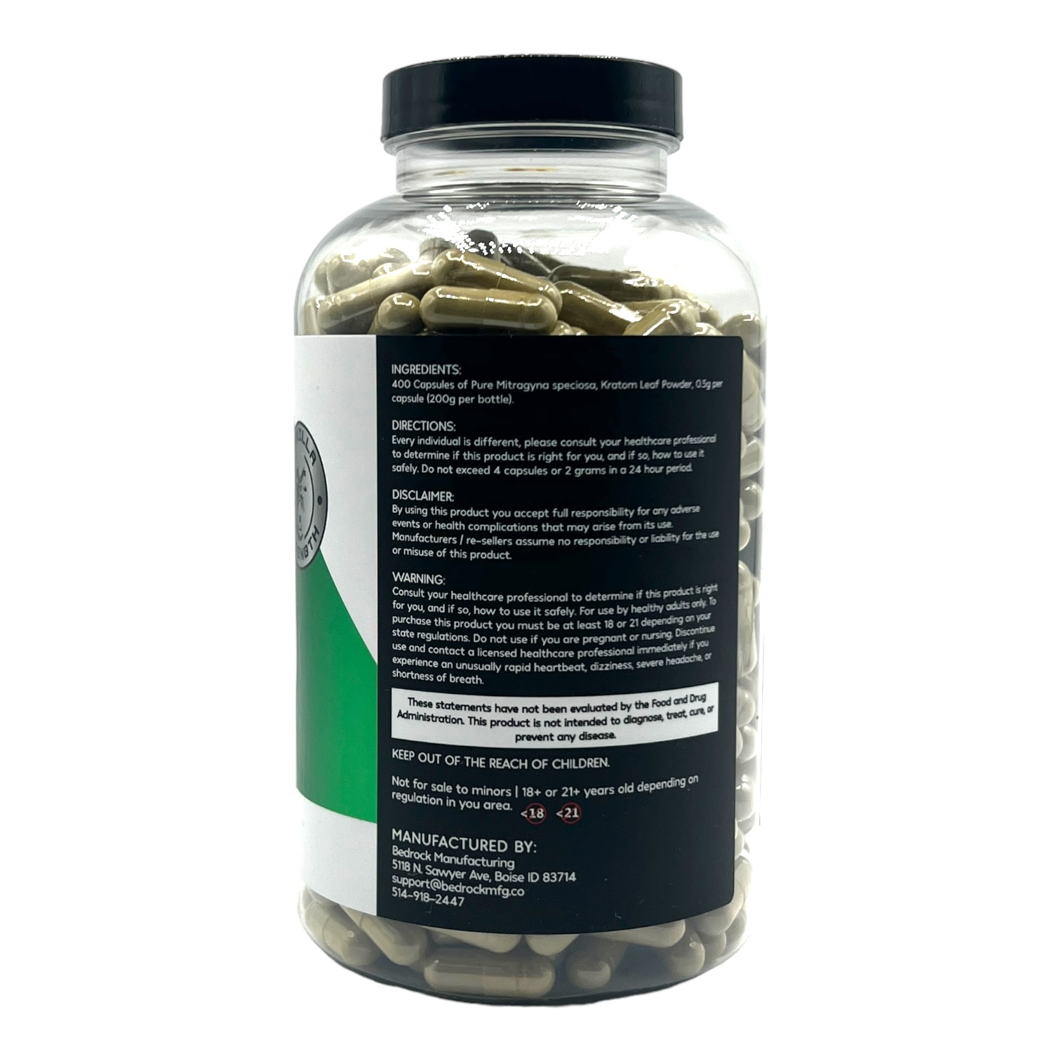 Mitragyna speciosa leaf powder, capsule shell.
