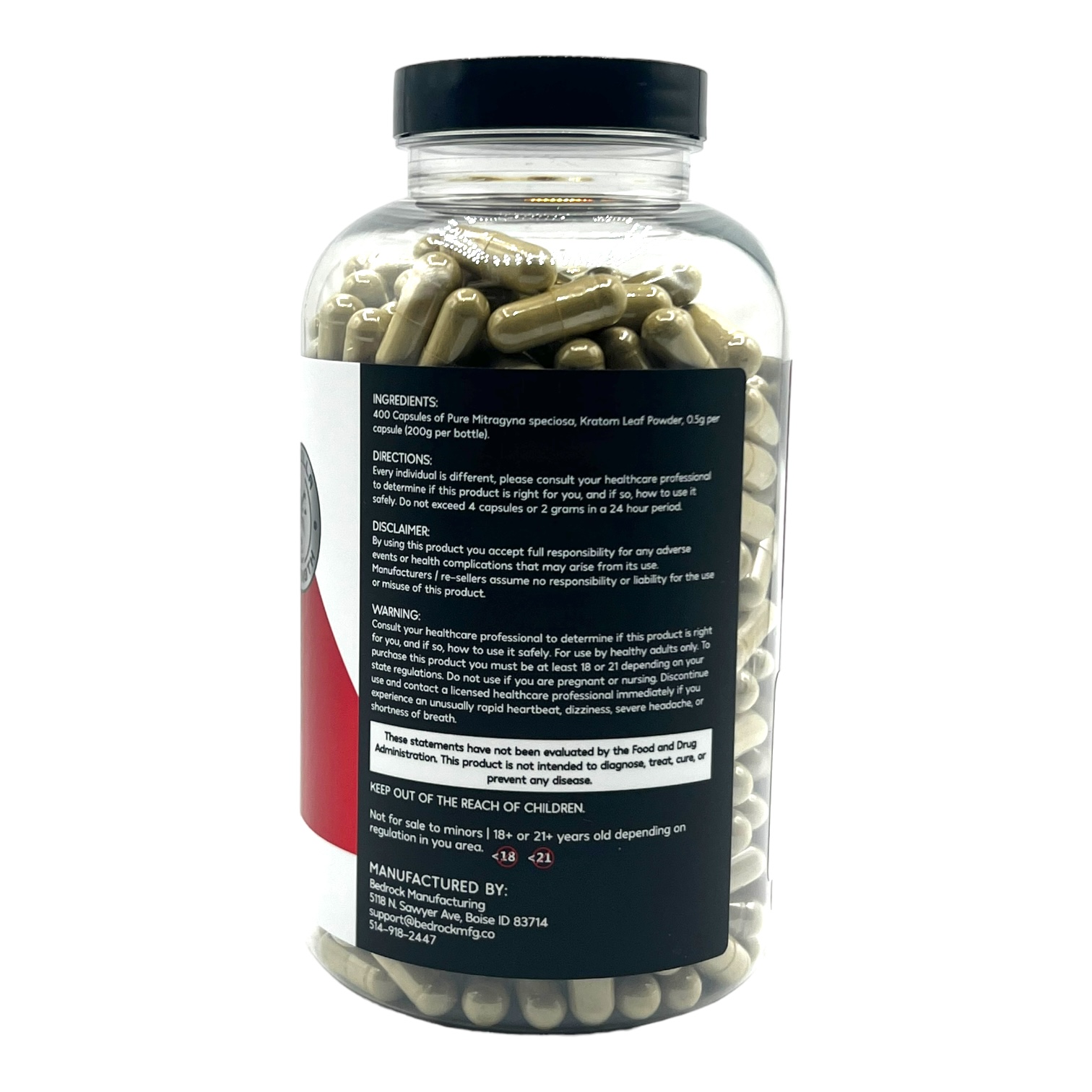Mitragyna speciosa leaf powder, capsule shell.