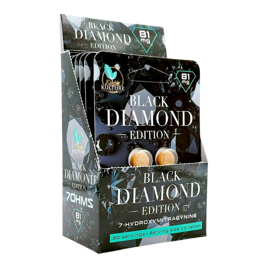 Kratom Kulture is recognized for producing strong, straightforward extract tablets designed with potency and consistency in mind. The 7-OH Black Diamond – 81mg Tablets are among their most concentrated offerings, packaged for flexibility and convenience.