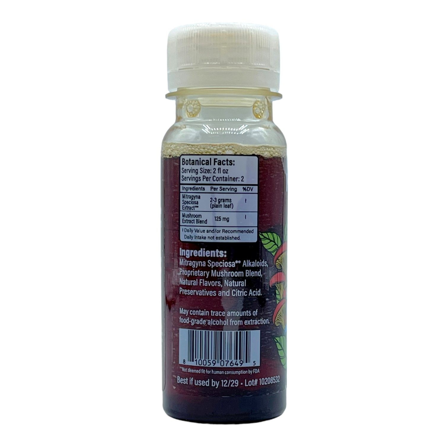 Ingredients: Mitragyna Speciosa Alkaloids, Proprietary Mushroom Blend, Natural Flavors, Natural Preservatives, Citric Acid