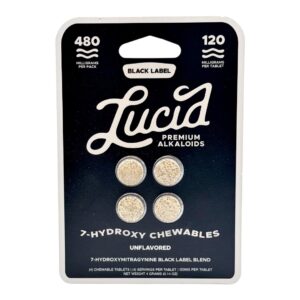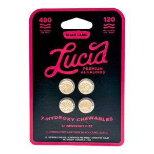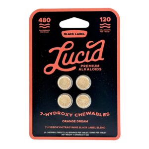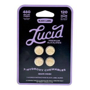 Lucid Black Label 7-OH Tablets come in Unflavored or Baja Blast, Grape Crush, Orange Dream, and Strawberry Fizz flavors form deliver maximum potency in its purest state, without added taste or sweeteners. Each tablet contains an impressive 120mg of pure 7-hydroxymitragynine, making it one of the most concentrated kratom extract tablets available. This ultra-strength formula is crafted for experienced users seeking consistent, powerful effects in a clean and straightforward format.