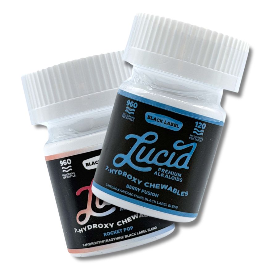 Lucid Black Label 7-OH Tablets come in Berry Fusion and Rocket Pop flavors form deliver maximum potency in its purest state, without added taste or sweeteners. Each tablet contains an impressive 120mg of pure 7-hydroxymitragynine, making it one of the most concentrated kratom extract tablets available. This ultra-strength formula is crafted for experienced users seeking consistent, powerful effects in a clean and straightforward format.