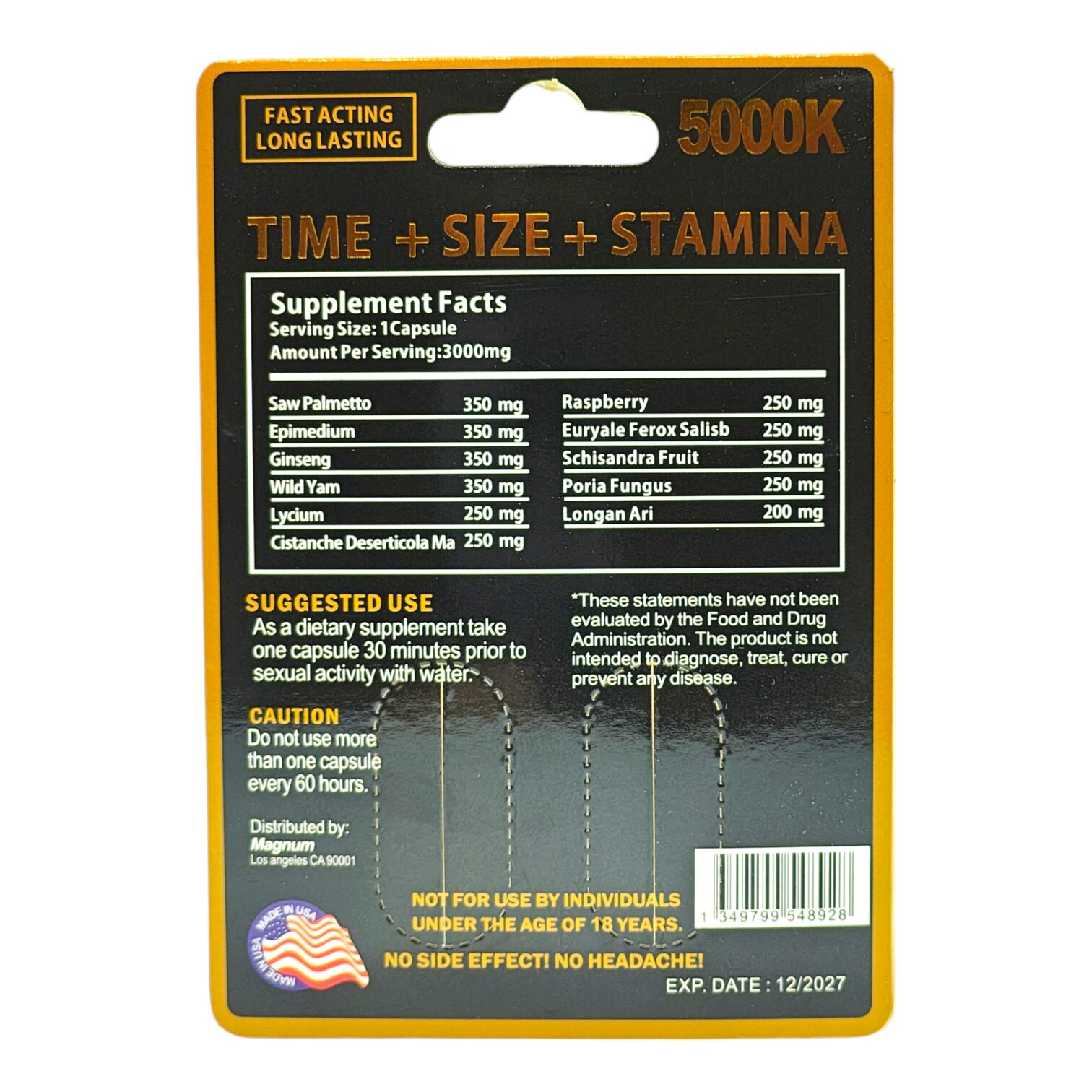- Take 1 capsule 45 minutes before sexual activity for enhanced libido, energy, and readiness.