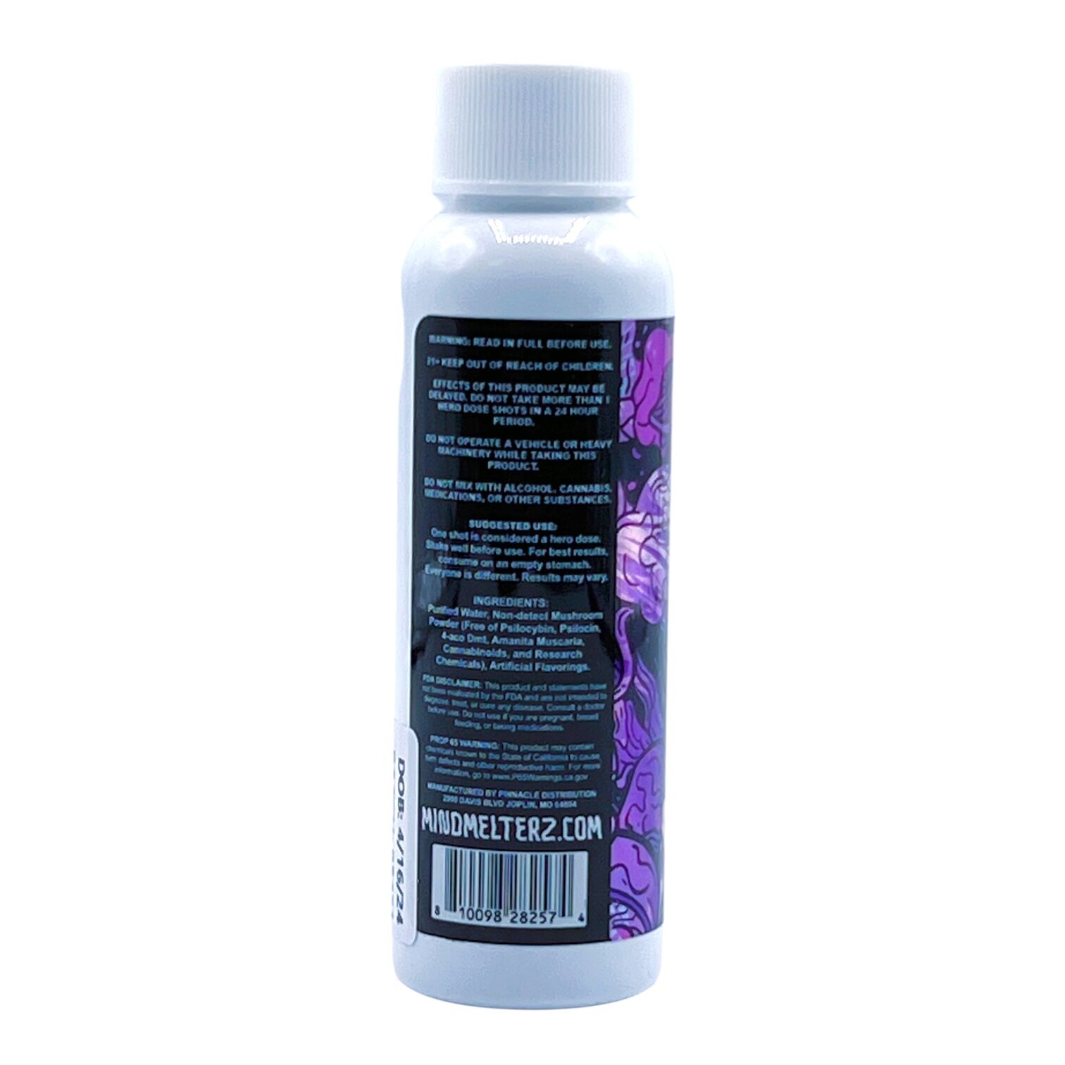 The Mind Melterz Magic Mushroom Hero Dose 59mL Shot is a specialty liquid product formulated with a unique mushroom-based blend. Each bottle is carefully crafted for precision and consistency, with non-detect mushroom powder and other select ingredients.