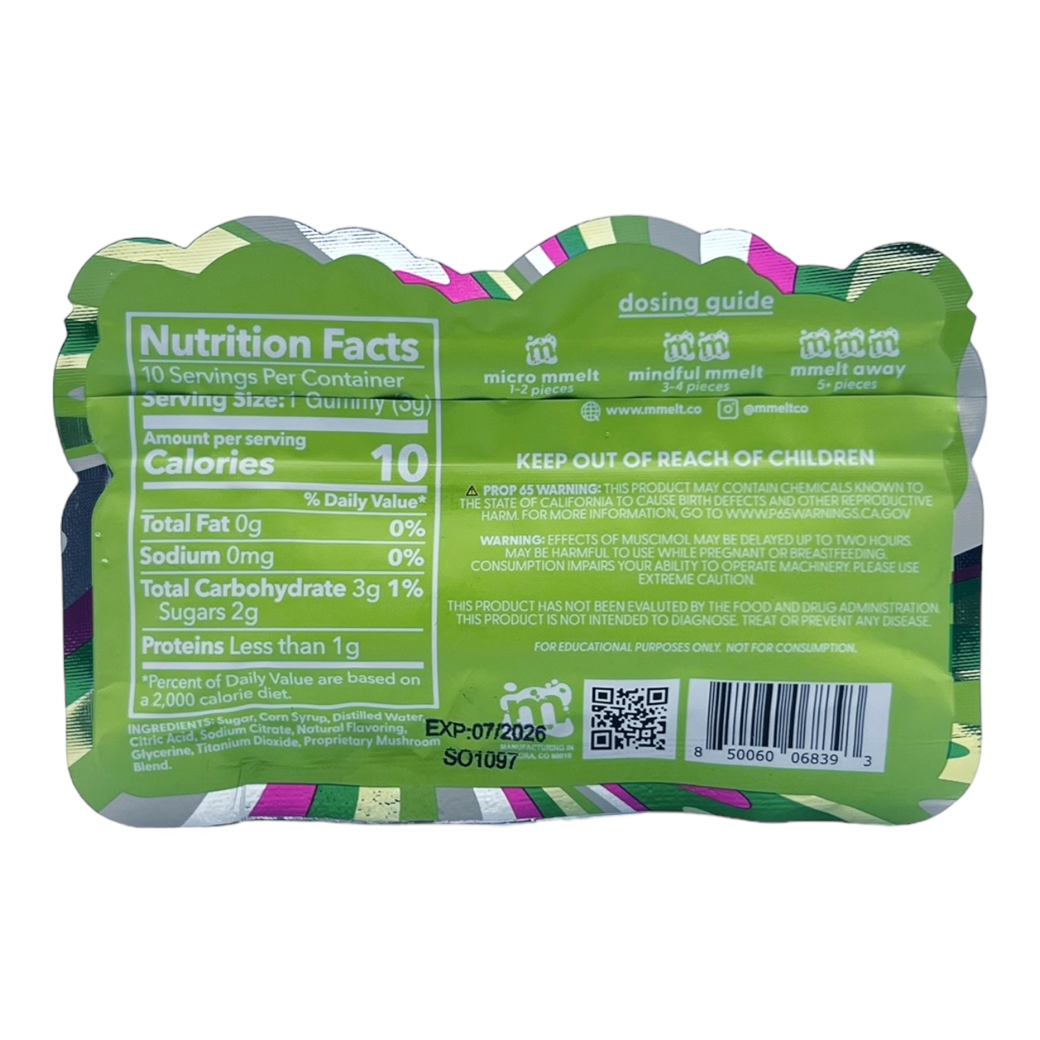 Ingredients: Sugar, Corn Syrup, Distilled Water, Citric Acid, Sodium Citrate, Natural Flavoring, Glycerine, Titanium Dioxide, Propriety Mushroom Blend.