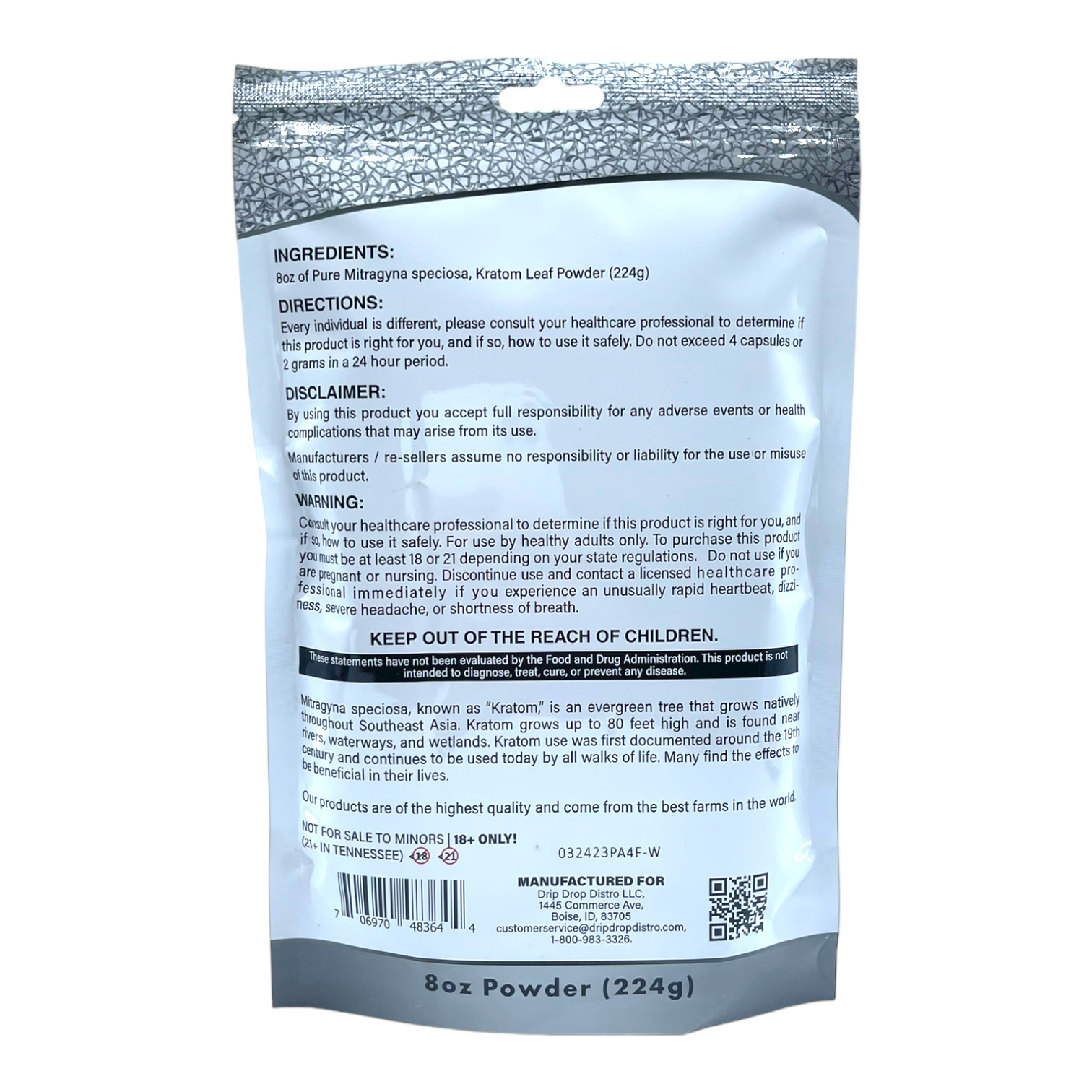 - 8oz of finely ground kratom leaf powder