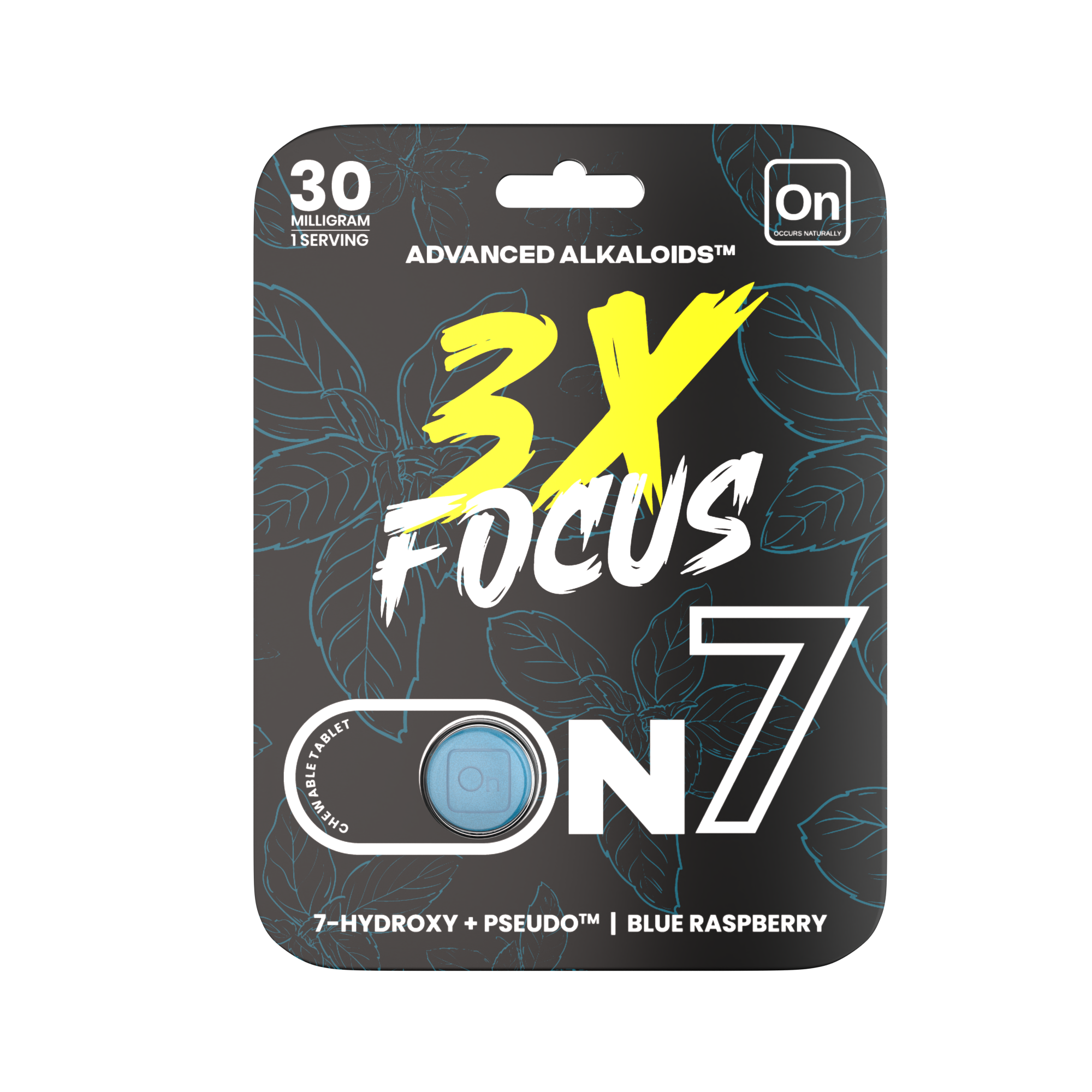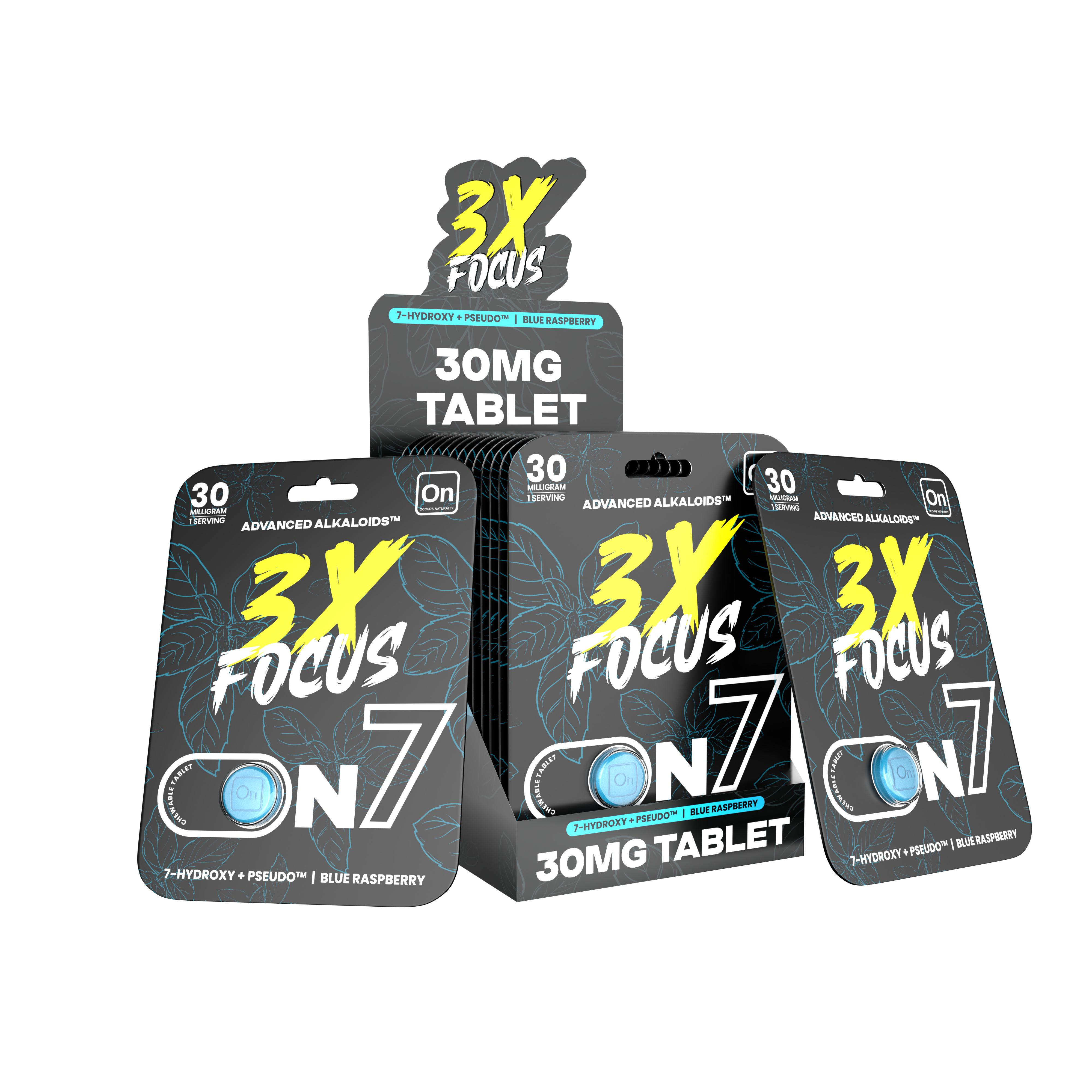 Long day ahead? On7 7-OH Pseudo 3x Focus Tablets Blue Raspberry are built to keep you sharp without the crash you’d get from sugary energy drinks or heavy caffeine. Each tablet delivers 30mg of 7-hydroxymitragynine, giving you a clean boost that helps cut through mental fog and stay on task.