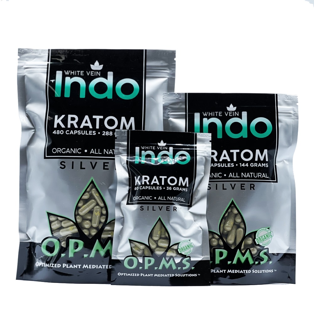 The OPMS Silver White Indo Kratom Capsules showcase one of the most classic strains in a clean and convenient capsule format. White Indo is a well-recognized kratom variety, offering the dependable quality that has made OPMS one of the most trusted names in the industry.