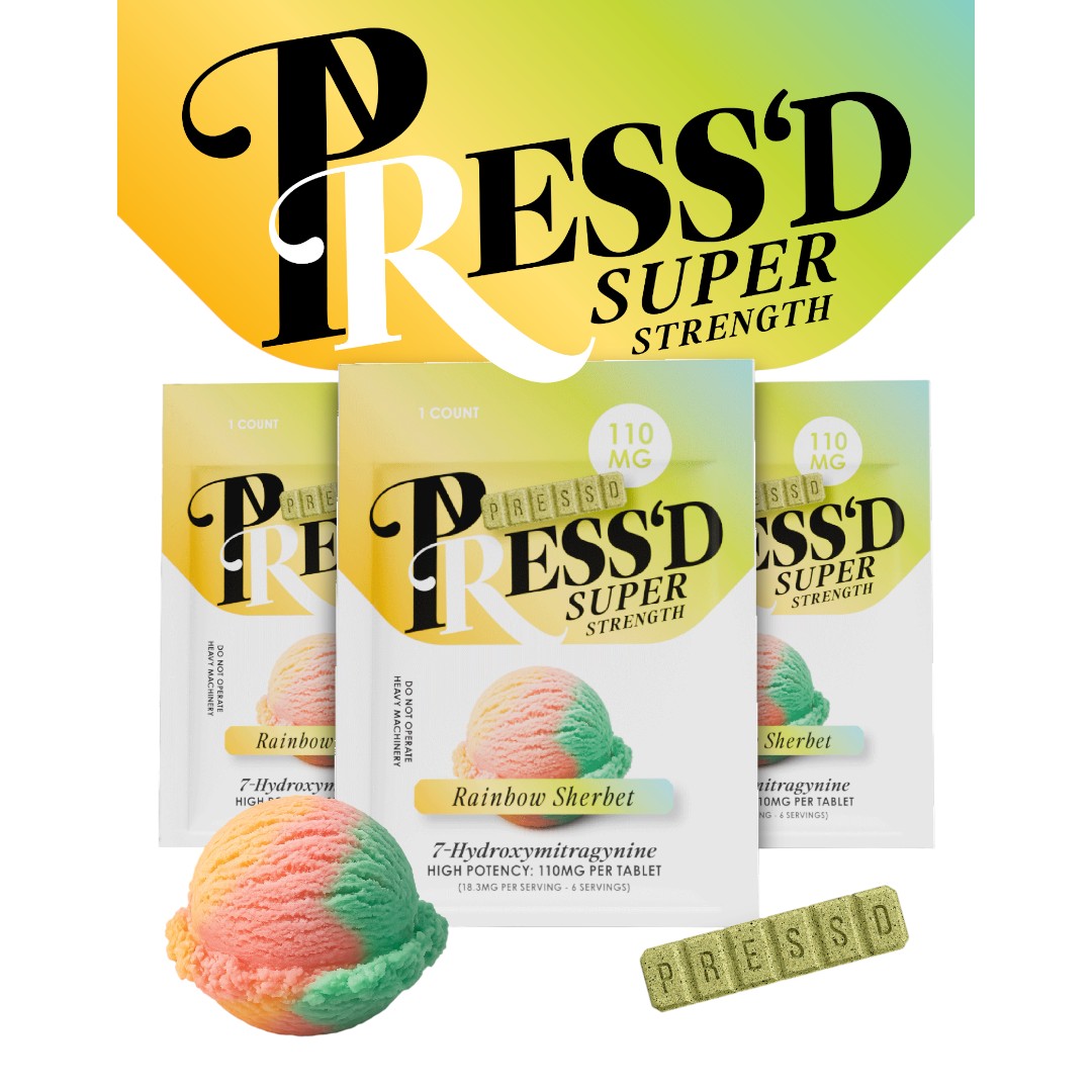 Press’D Super Strength 7OH Kratom Extract Tablets bring together maximum strength, bright candy-style flavor, and fast-acting support in a single compact tablet, making them a go-to choice for experienced kratom users who prioritize potency, precision, and convenience.