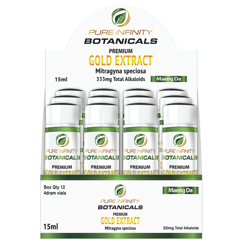 The Pure Infinity Gold Extract Shot delivers a concentrated kratom experience in a convenient 15ml liquid format. Known for their consistency and quality, Pure Infinity Botanicals has built a strong reputation within the kratom community. The Gold Extract Shot is one of the flagship items in their lineup, offering a ready-to-use option for those who prefer liquid extracts.