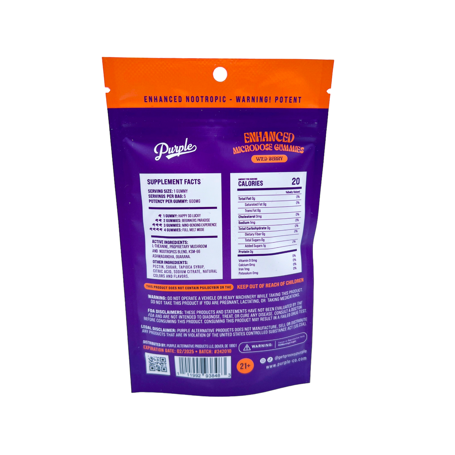 Experience a flavorful twist with Purple Wild Berry Mushroom Gummies, blending a proprietary mushroom + nootropics formula with
