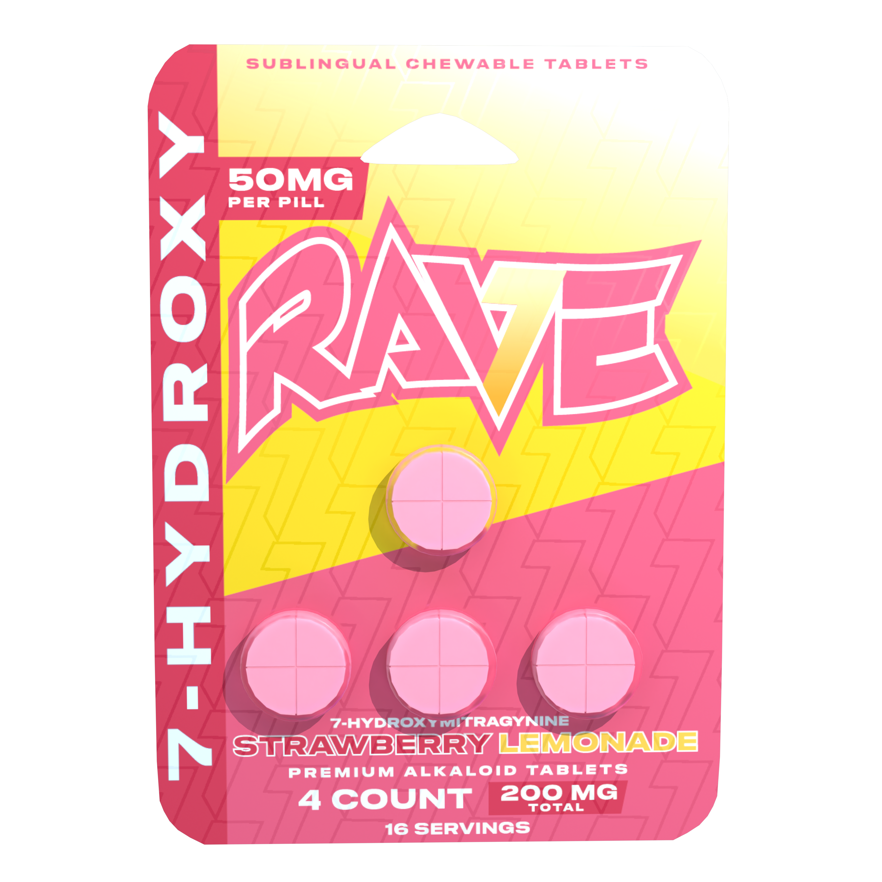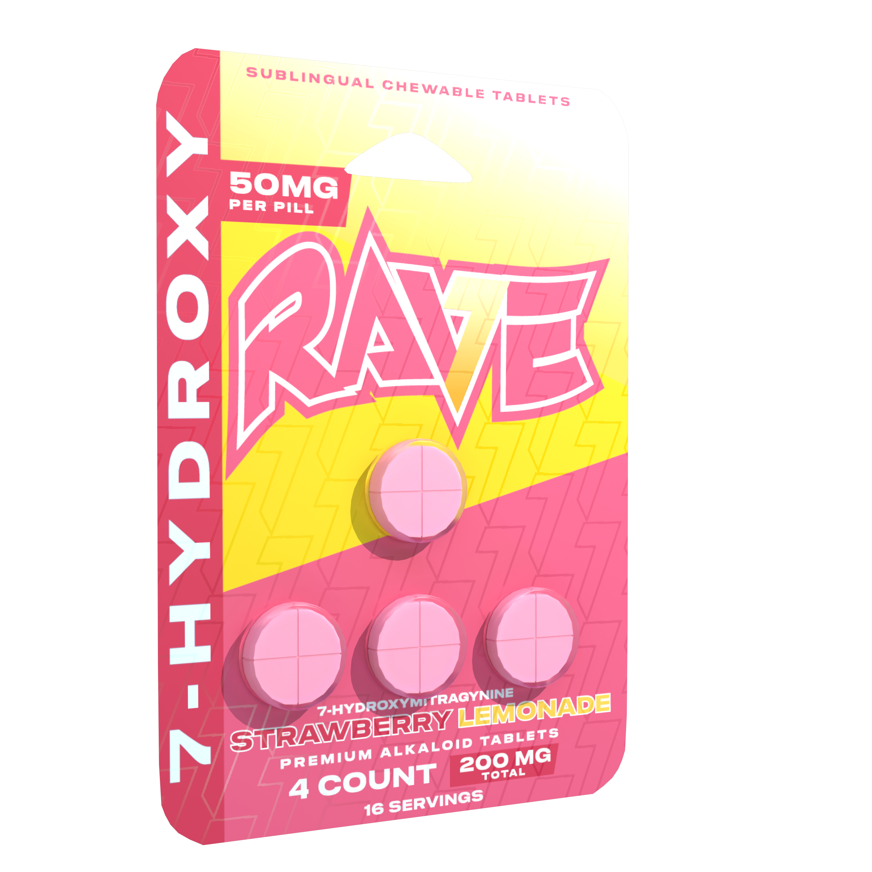 Rave Kratom 7-OH Strawberry Lemonade Tablets – 50mg Chewable Kratom Tablets (4ct)