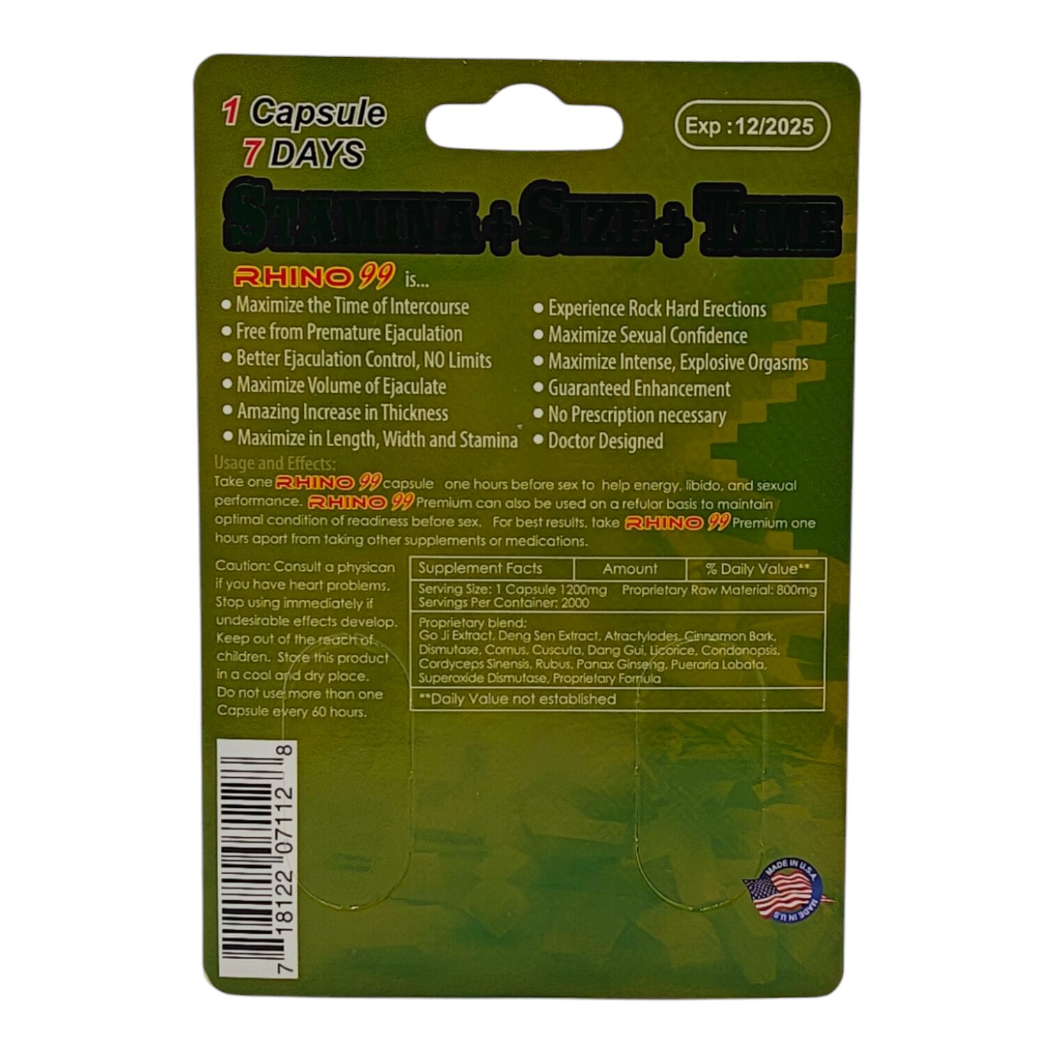 - Take 1 Rhino 99 Extreme 188K Male Enhancement Capsules one hour before sexual activity for best results.