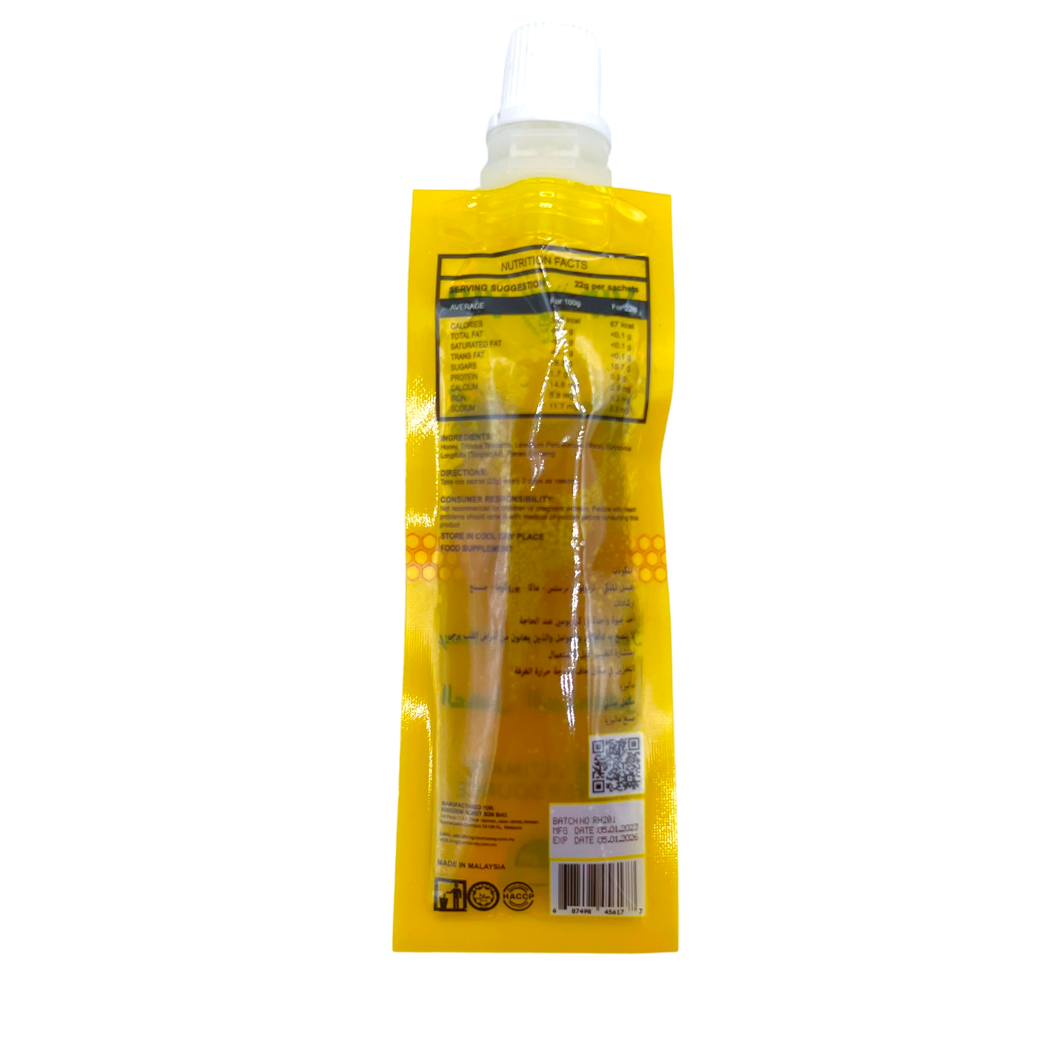 Discover the natural goodness of Royal Honey 22G, a premium dietary supplement crafted with a blend of Royal Jelly, Bee Pollen, and Rainforest Herbs. Specially formulated for individuals aged 18 and above, this exquisite supplement offers a unique fusion of nutrients to support your overall well-being.