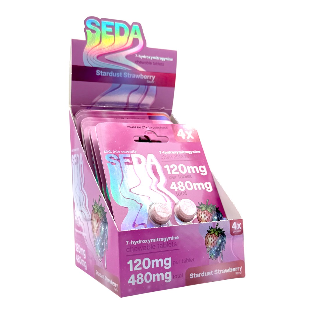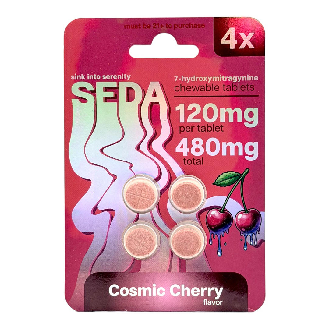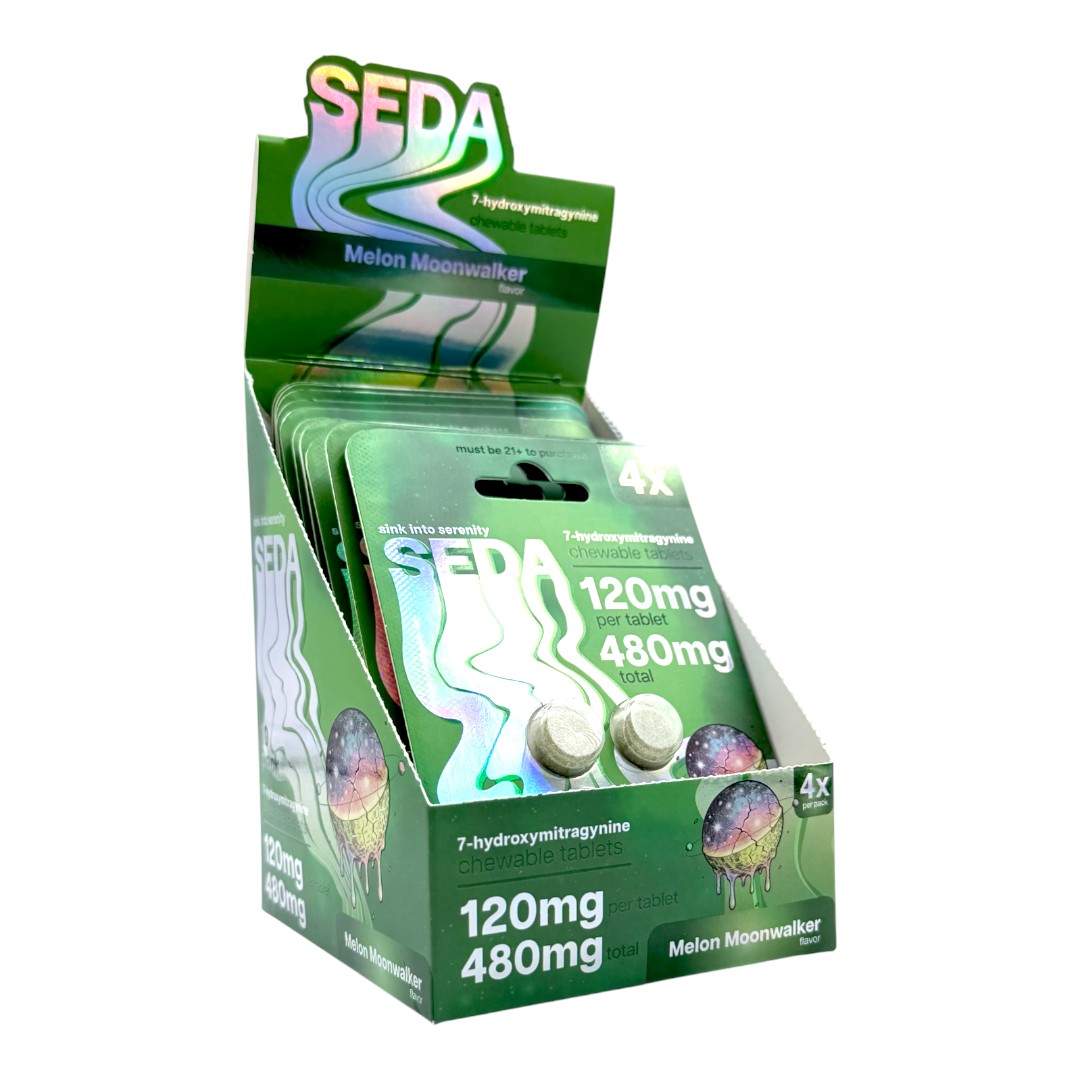 SEDA 7-OH Chewable Flavored Tablets 120mg x 4ct are ultra-strength, flavored 7-hydroxymitragynine tablets designed for experienced adult users who want high potency in a fast-acting, chewable format. Each pack contains 4 tablets with 120mg of 7-hydroxymitragynine per tablet (480mg total), offering pre-measured servings for users who prefer concentrated 7-OH over traditional kratom powders.