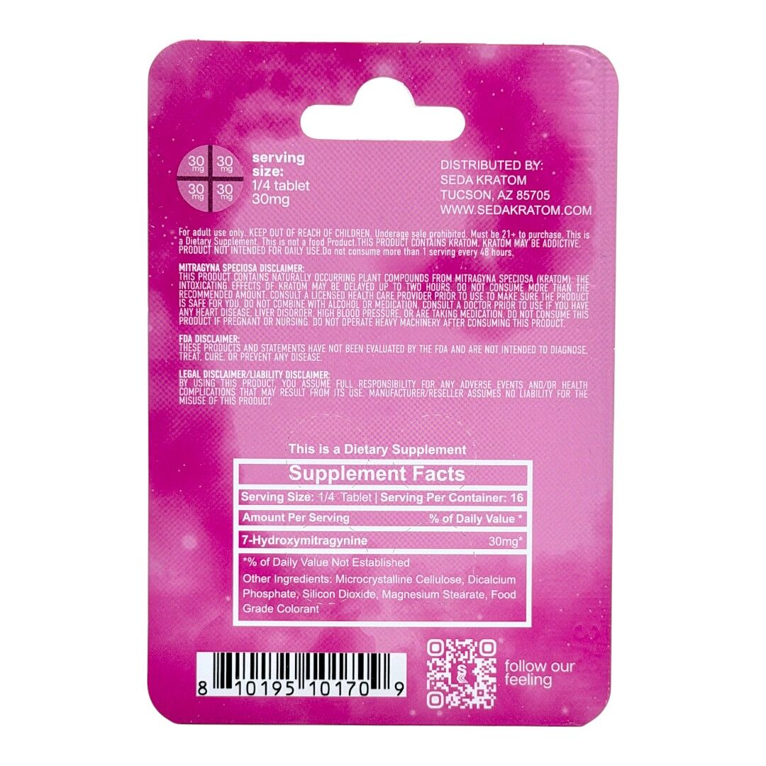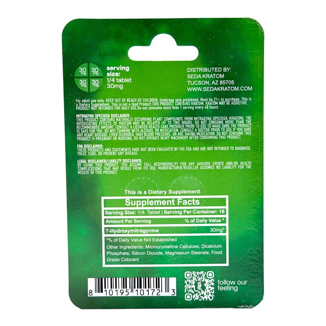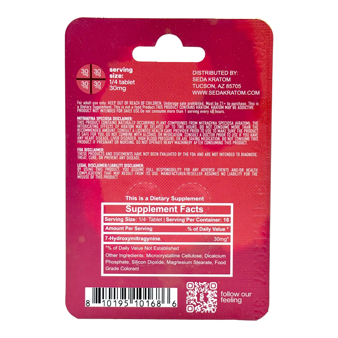 SEDA 7-OH Chewable Flavored Tablets 120mg x 4ct are ultra-strength, flavored 7-hydroxymitragynine tablets designed for experienced adult users who want high potency in a fast-acting, chewable format. Each pack contains 4 tablets with 120mg of 7-hydroxymitragynine per tablet (480mg total), offering pre-measured servings for users who prefer concentrated 7-OH over traditional kratom powders.