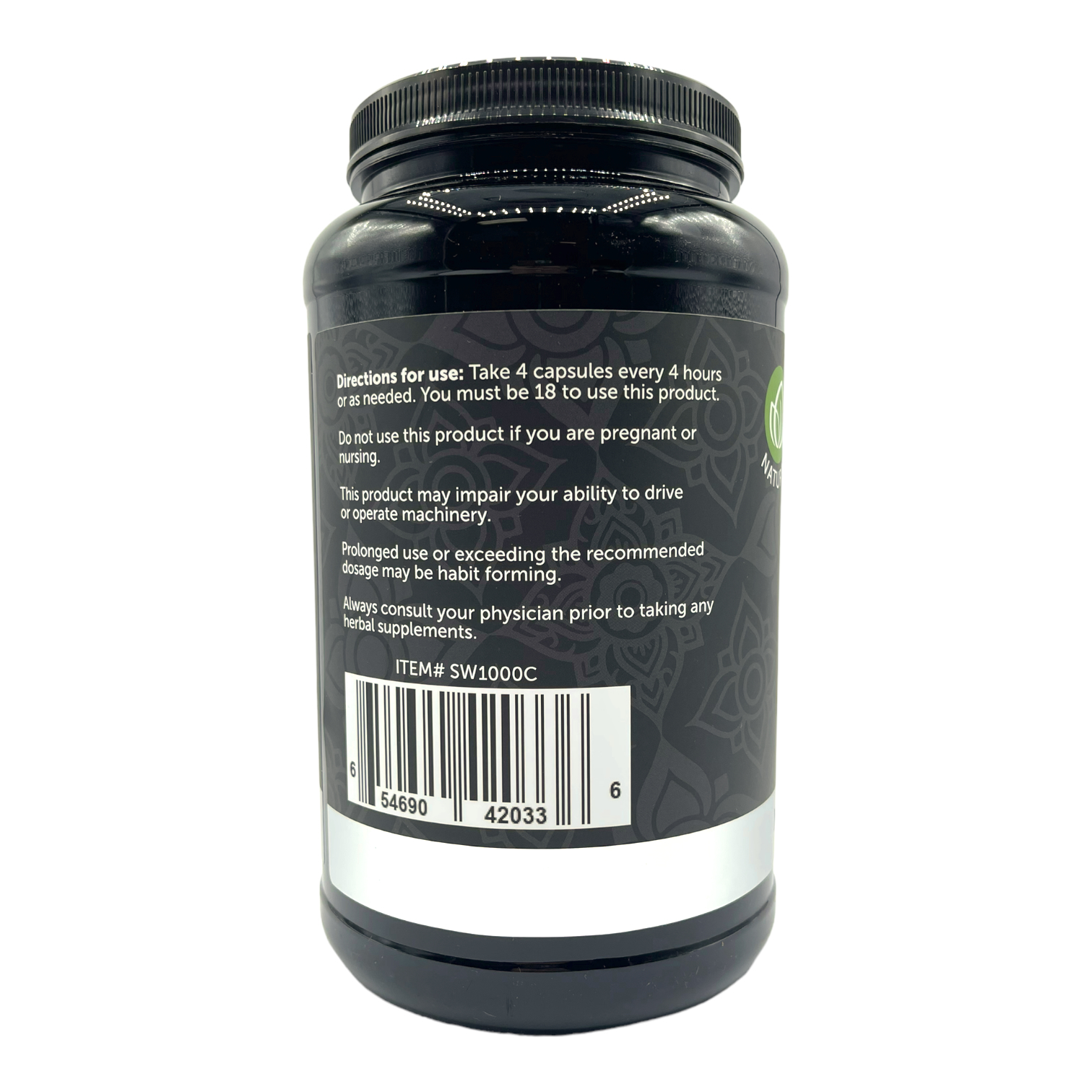 Potent & Consistent – 2000mg of pure kratom per serving (4 capsules).