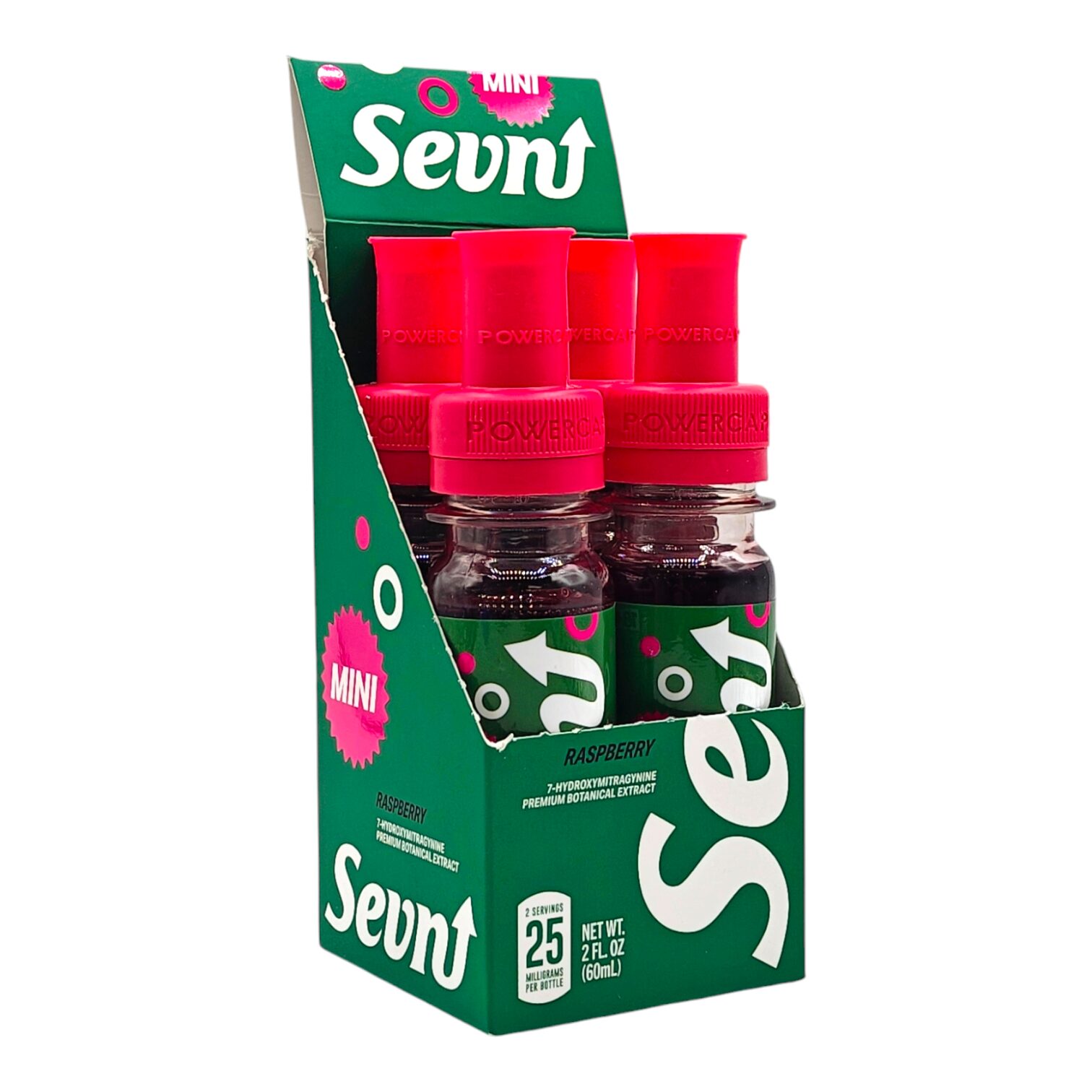 Order the SEVN Mini 7-OH Flavored Shots (25mg, 60mL) today at Club7OH.com, available in Raspberry and Cotton Candy flavors for a flavorful, portable kratom experience.