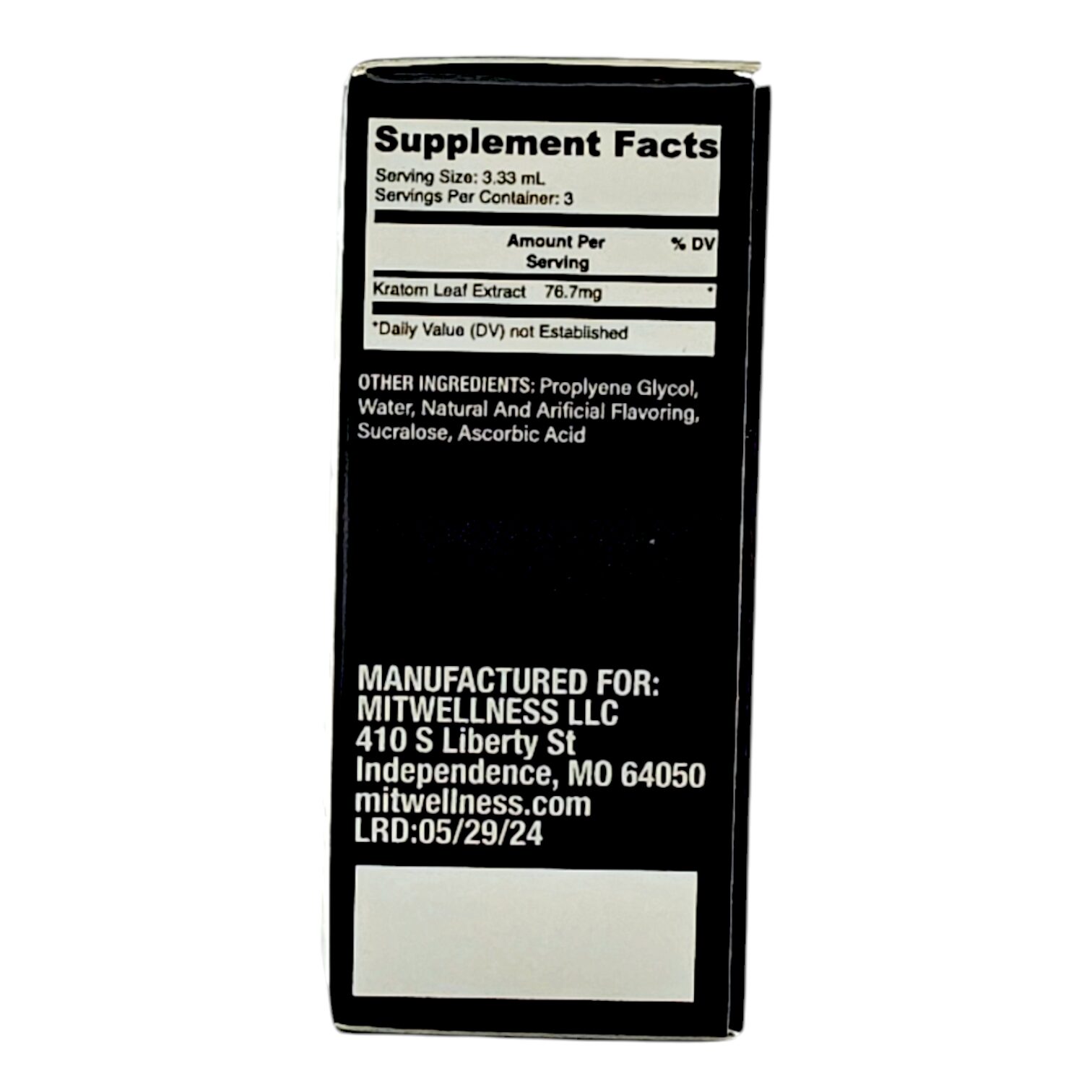 Ingredients: Propylene Glycol, Water, Full Spectrum Kratom Extract, Natural Flavoring, Sucralose, Ascorbic Acid