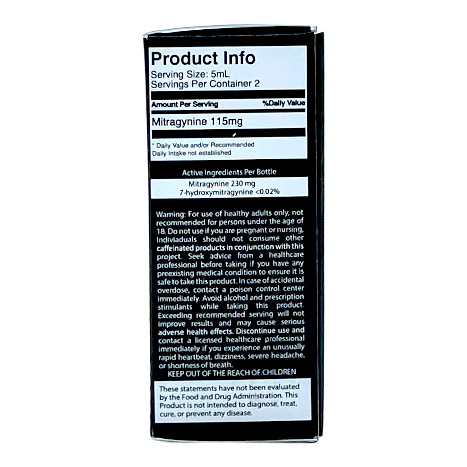 Active Content per Bottle: Mitragynine 107–113mg, 7-Hydroxymitragynine <0.02%