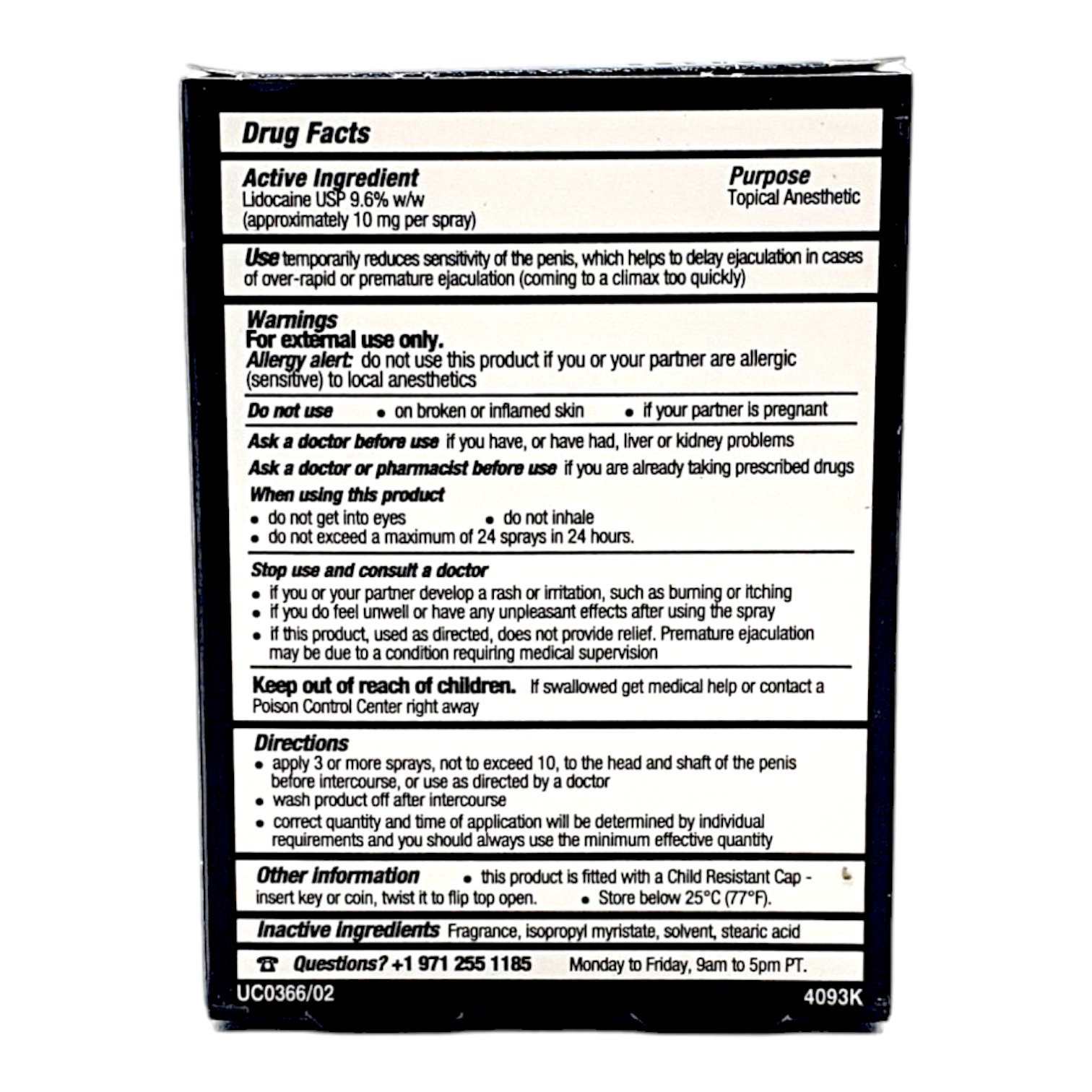 Use temporarily reduces sensitivity of the penis, which helps to delay ejaculation in cases of over-rapid or premature ejaculation (coming to a climax too quickly)