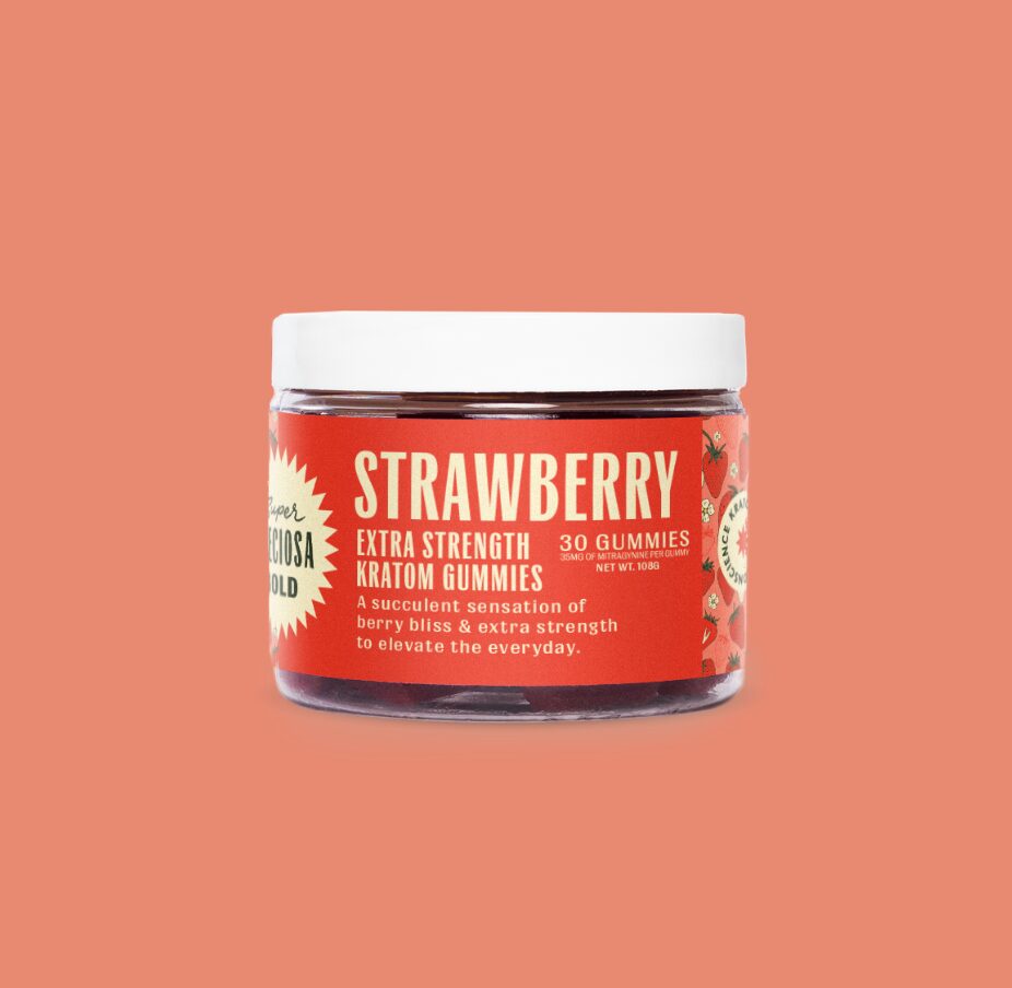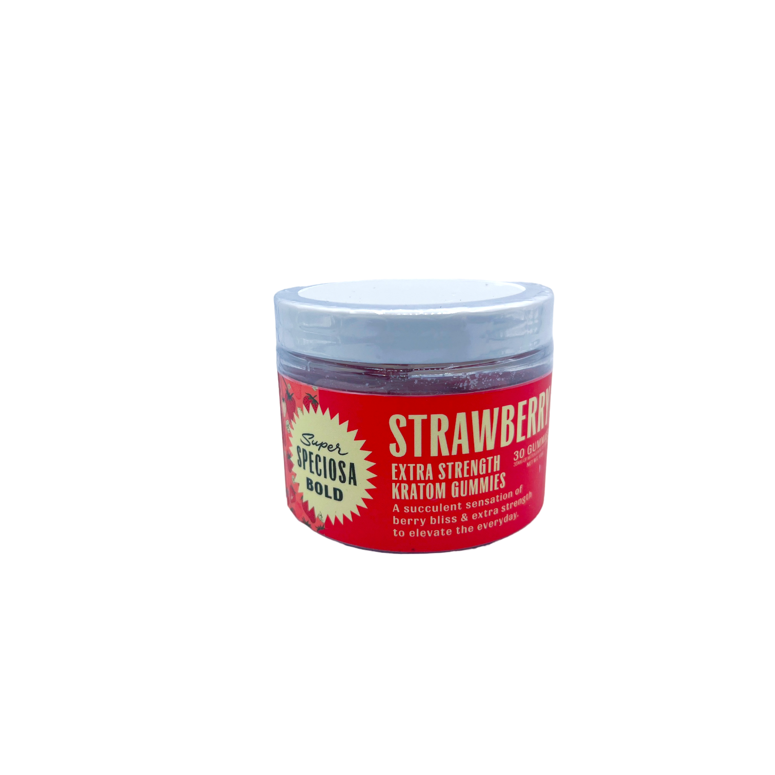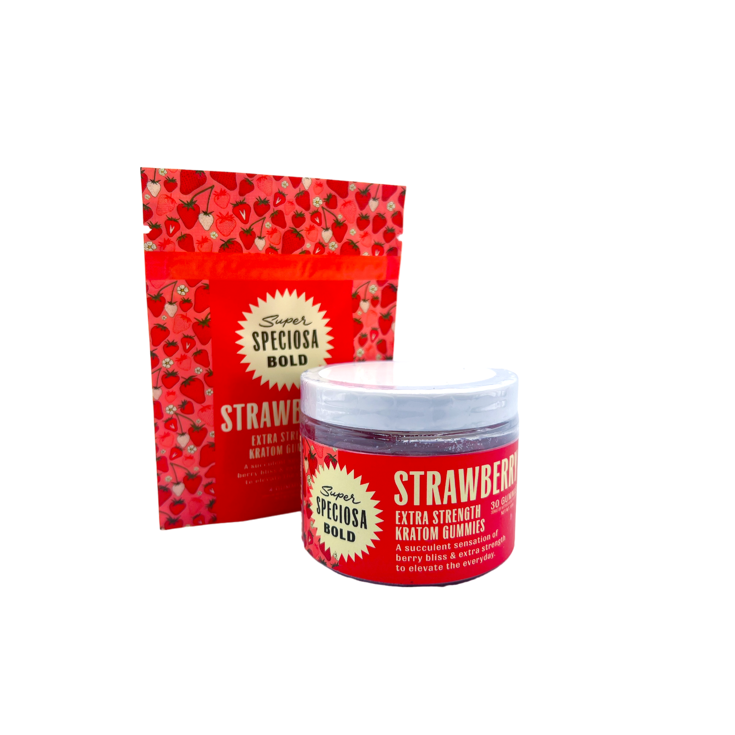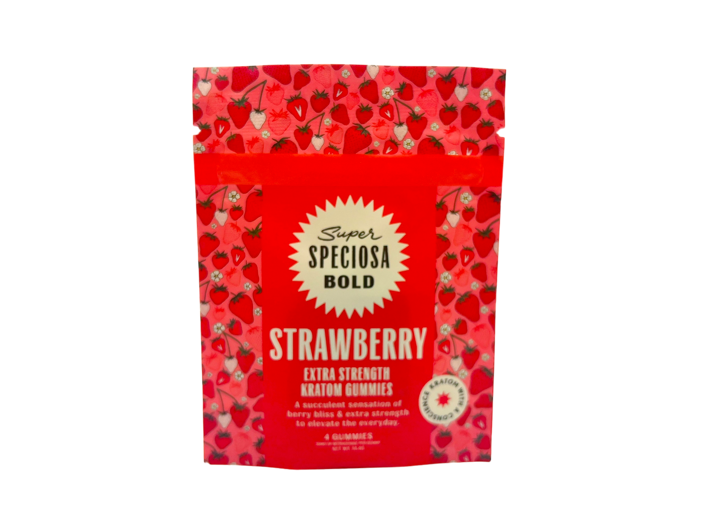 Check out our Super Speciosa Bold Gummies Strawberry, a delightful fusion of taste and potency tailored for kratom aficionados. Each gummy delivers an impressive 35mg of mitragynine, mirroring the strength of 2.33 grams of kratom powder at a 1.5% mitragynine concentration.