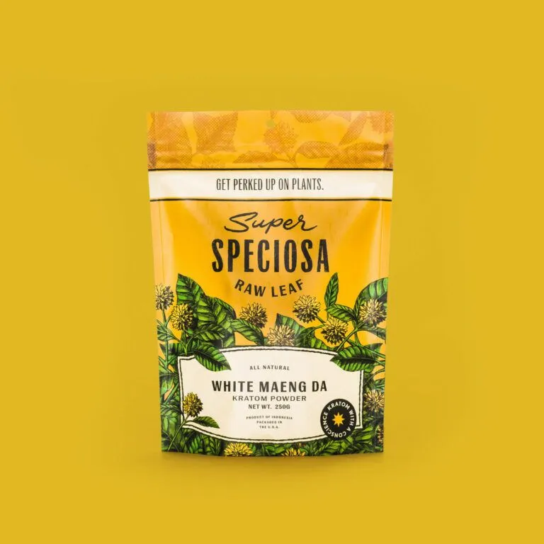 Super Speciosa White Maeng Da Kratom Powder is delivered regularly, on a weekly basis, to ensure freshness and quality. All of our kratom is packaged by our in-house equipment that weighs and heat seals individual pouches to maximize cleanliness and minimize human contact with your personal goods. We stand by the quality of our kratom products and offer a 30-day money-back guarantee on every purchase.
