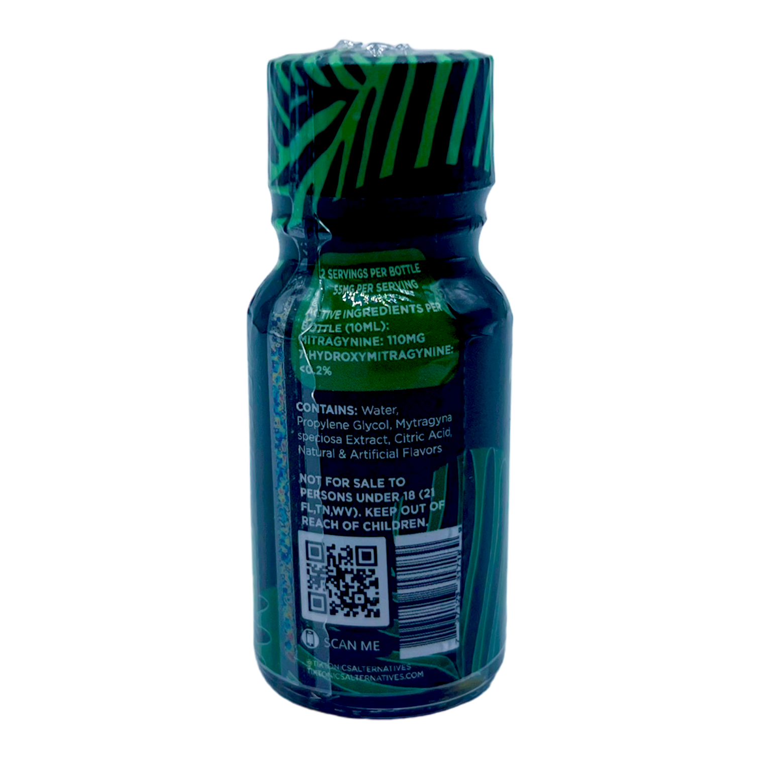Water, Propylene Glycol, Mytragyna Speciosa Extract, Citric Acid Natural & Artificial Flavors