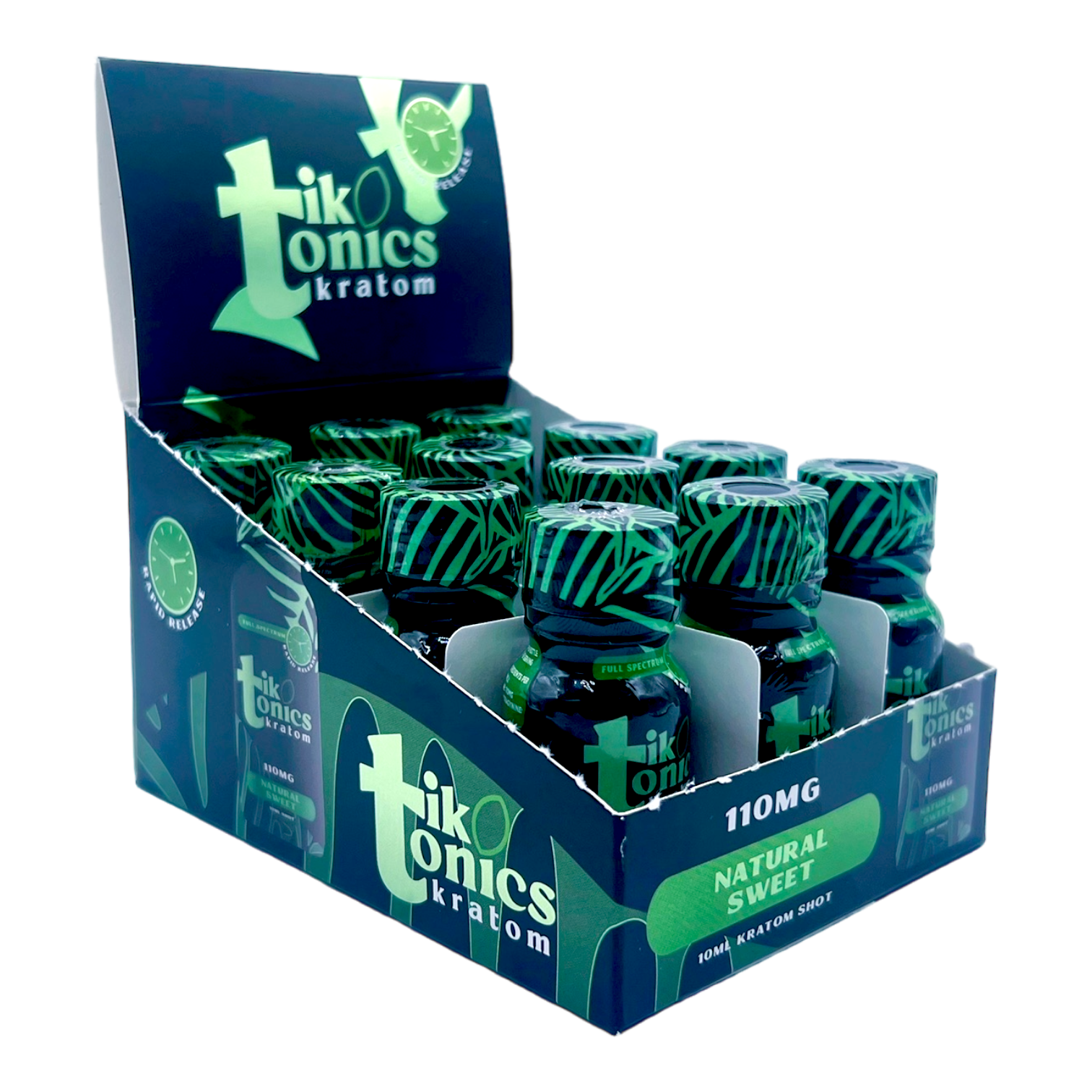 Unlock the convenience and potency of Tik Tonics Kratom Shot Natural Sweet, meticulously crafted to enhance your wellness journey with ease. Each compact bottle contains 110mg of pure kratom goodness, providing a potent dose in a convenient form. With its rapid-release formulation, this shot ensures quick absorption, allowing you to experience the benefits of kratom without delay. Infused with natural sweet flavoring, our Kratom Shot offers a delightful taste experience that makes supplementation a pleasure.