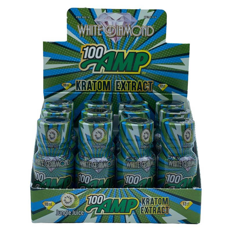 White Diamond AMP 100 Jungle Juice Kratom Extract Shot – a convenient way to enjoy premium kratom with bold flavor and trusted quality.