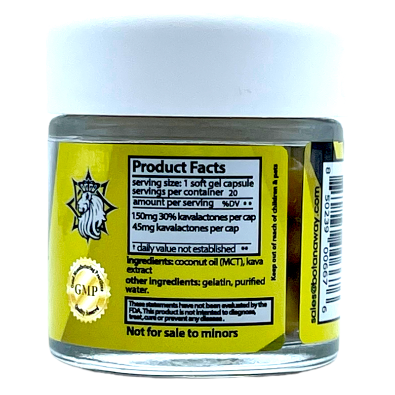 Standardized Extract – Each capsule contains 150mg of kava extract (approx. 45mg kavalactones).